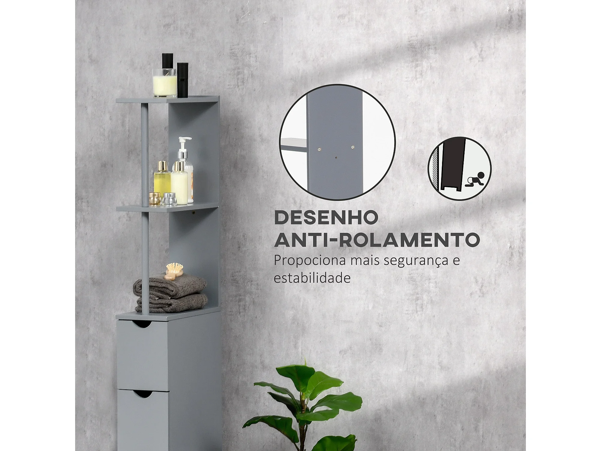Armário Compacto de Banho HOMCOM com 2 Prateleiras e 2 Gavetas - Cinza Moderno
