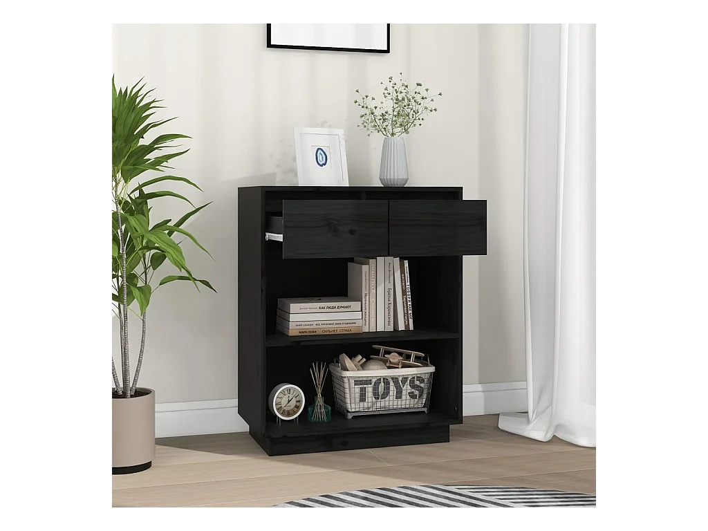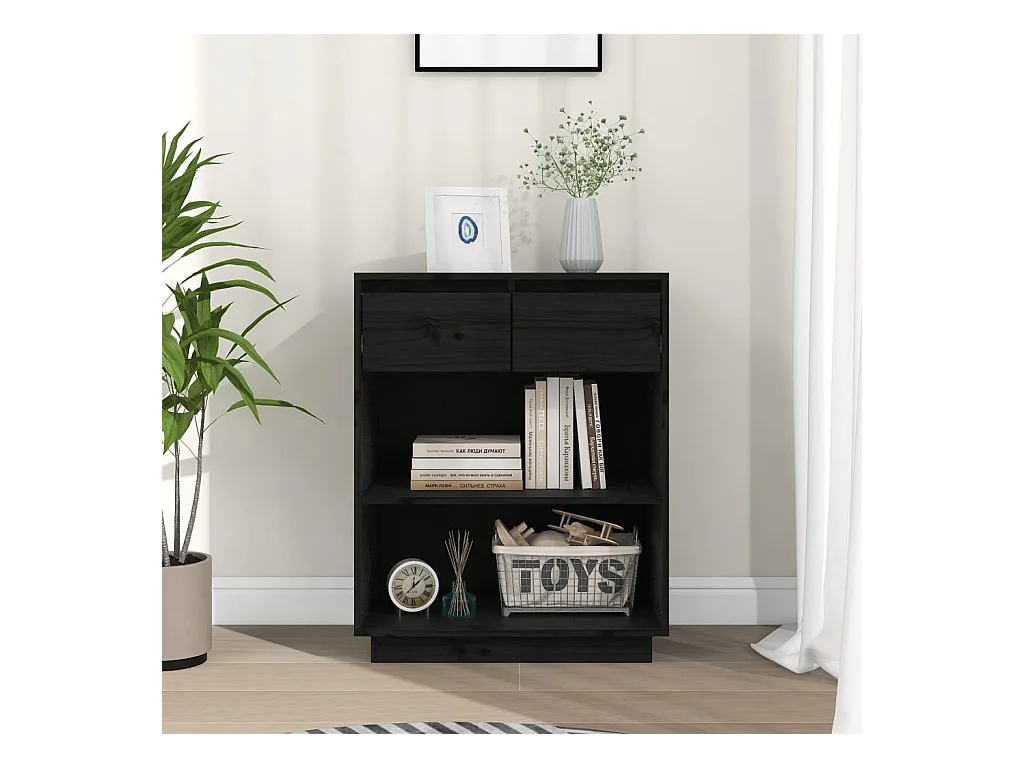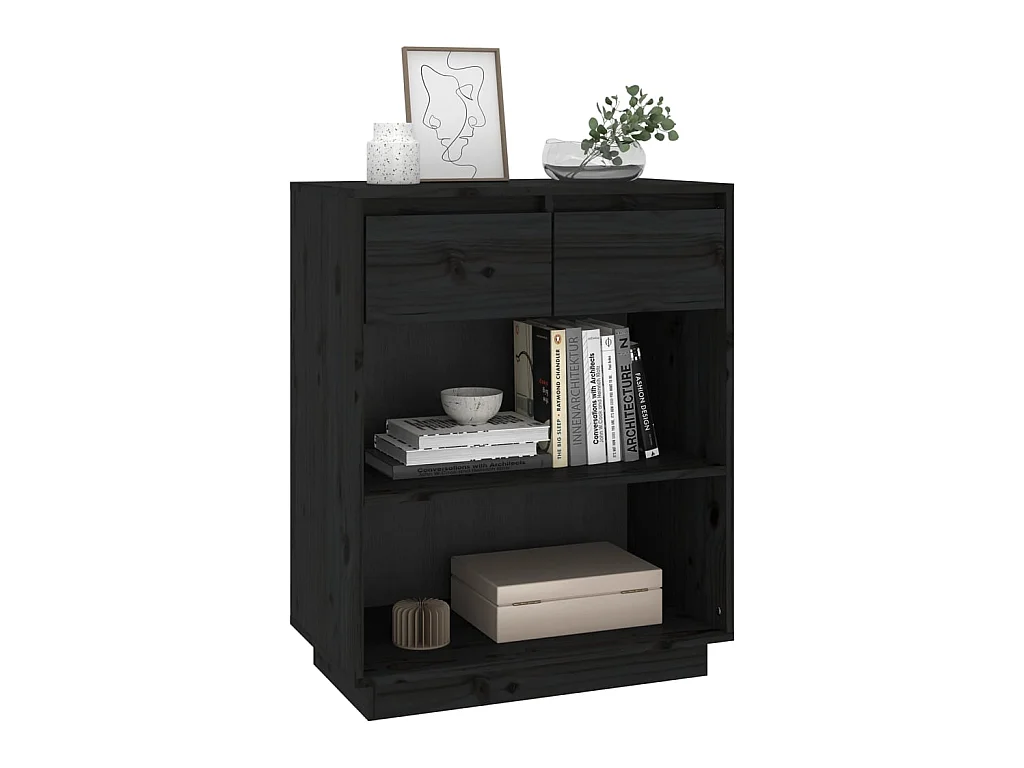 Armário consola 60x34x75 cm pinho maciço preto PT528379