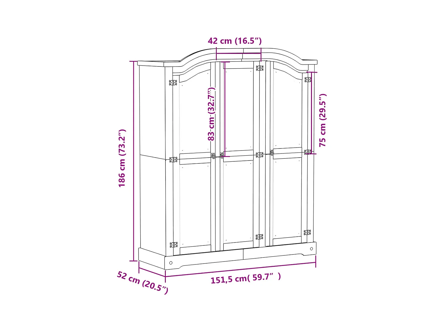Armário Corona branco 151,5x52x186 cm madeira maciça de pinho