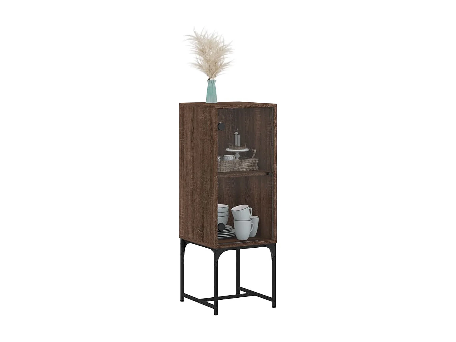 Armário de apoio c/ porta vidro 35x37x100 cm carvalho castanho