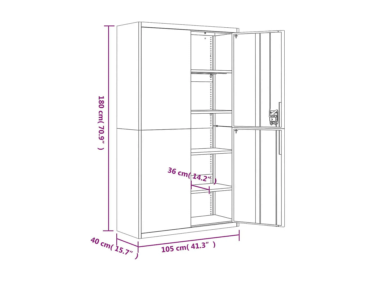 Armário de arquivo cinza claro 105x40x180 cm aço