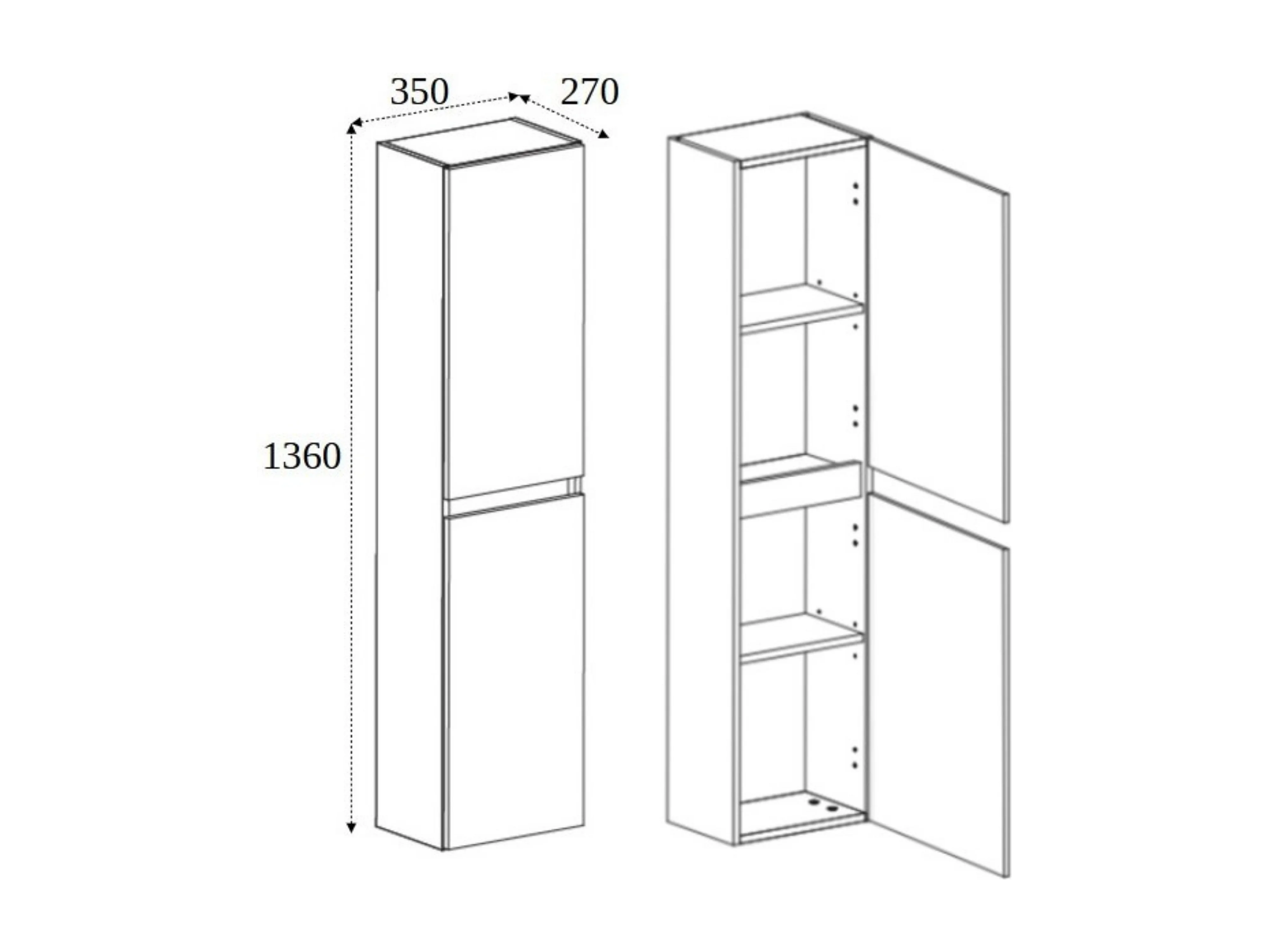 Móveis de banheiro, Cor: Carvalho claro, 35 x 136 x 27 cm