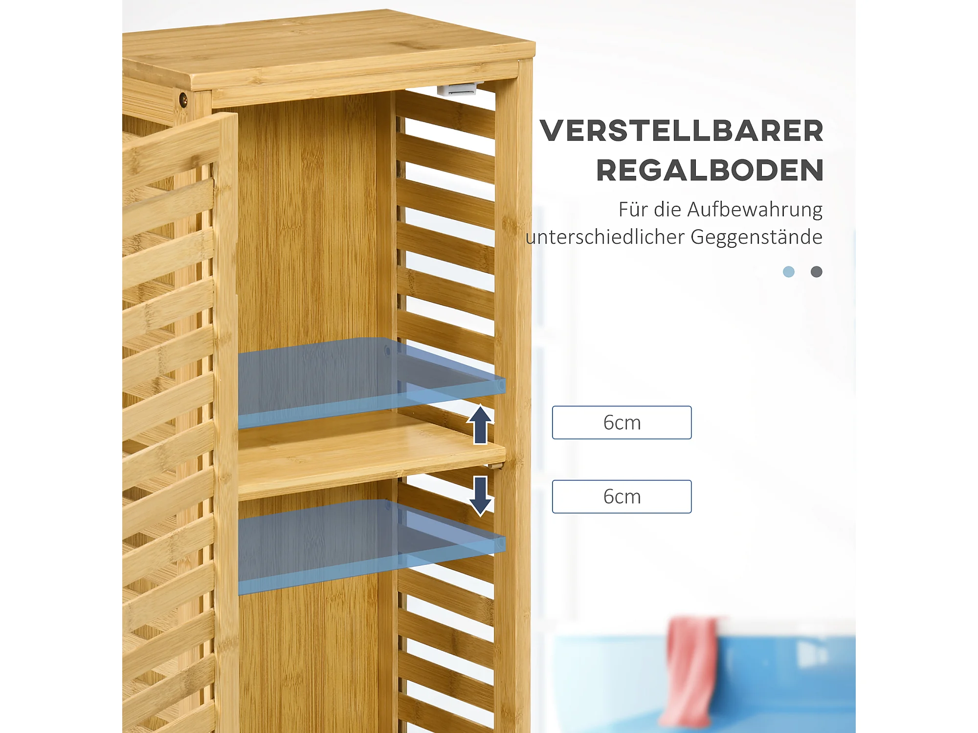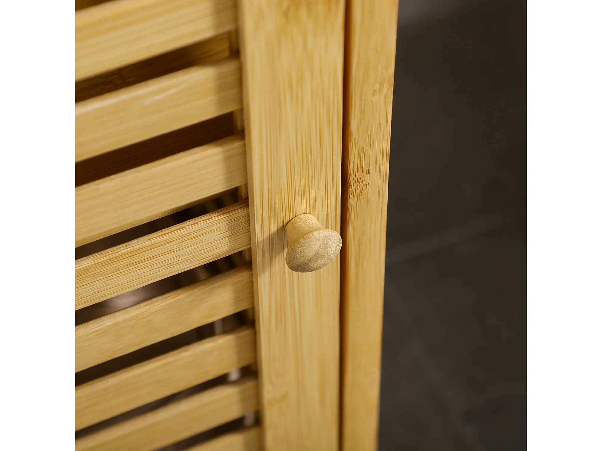 Móvel de banheiro de 3 níveis em bambu e MDF com portas venezianas 50x25x92cm