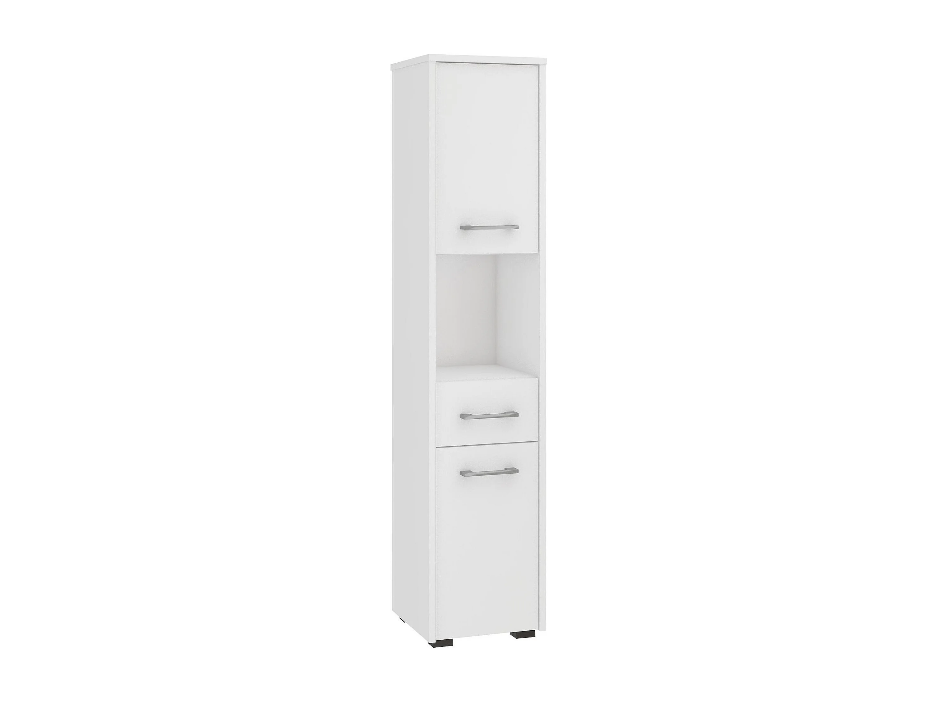 Coluna de banheiro, branca, 35 x 136 x 27 cm, puxador prateado