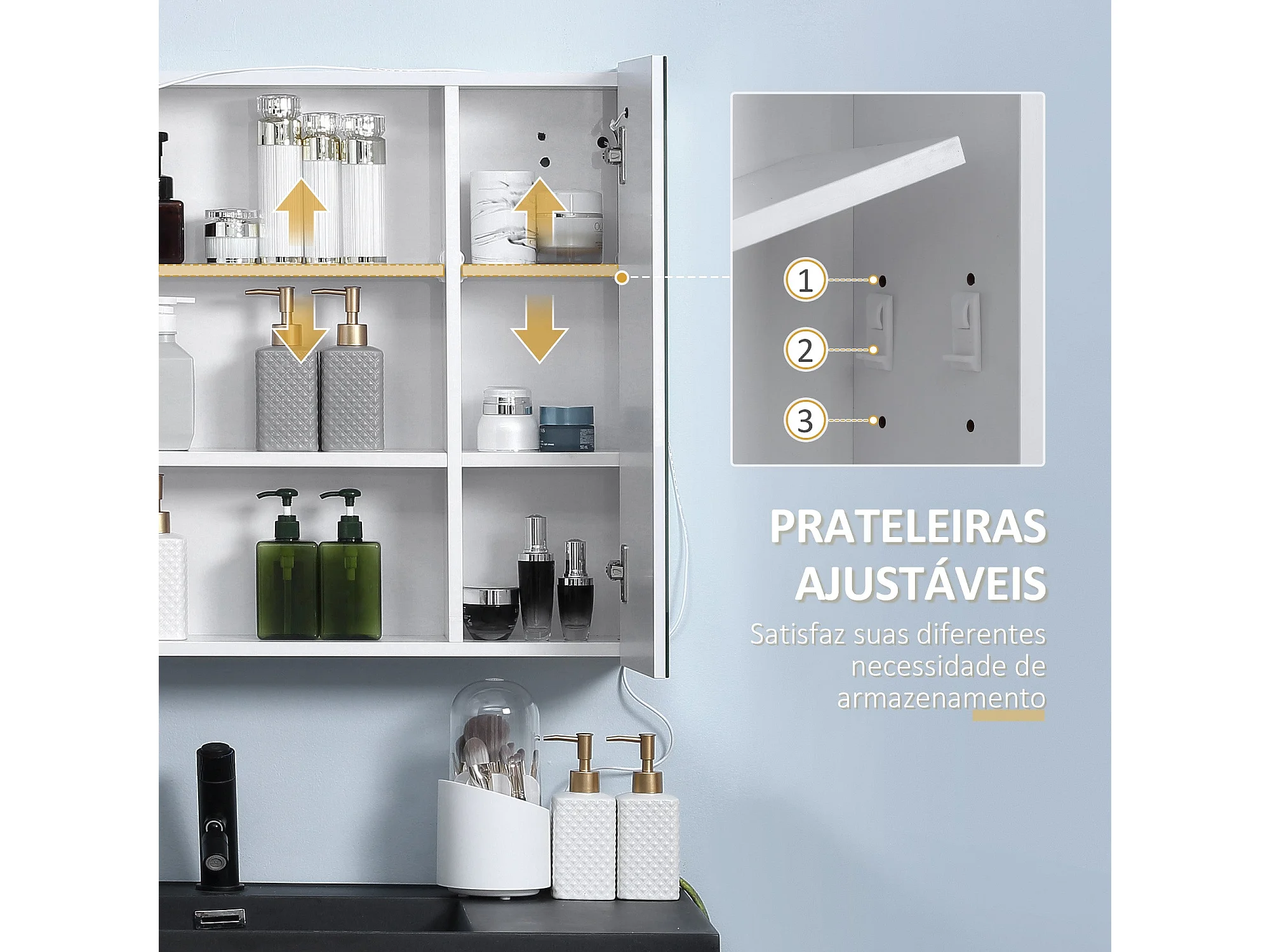 Armário de Banho com Espelho e Luz LED - 70x15x65 cm - Moderno e Funcional
