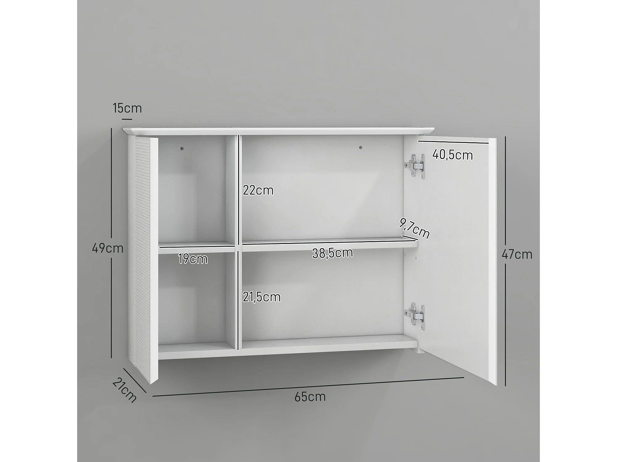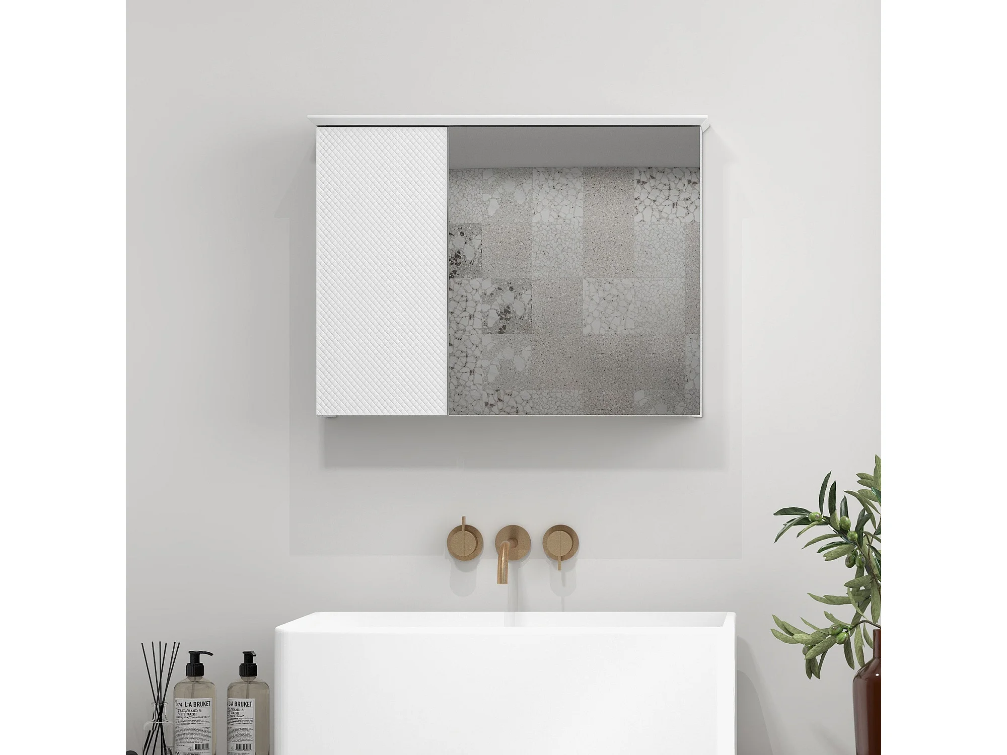 Armário de Banho HOMCOM com Espelho e Prateleira Ajustável - Estilo Moderno 65x15x49 cm Branco