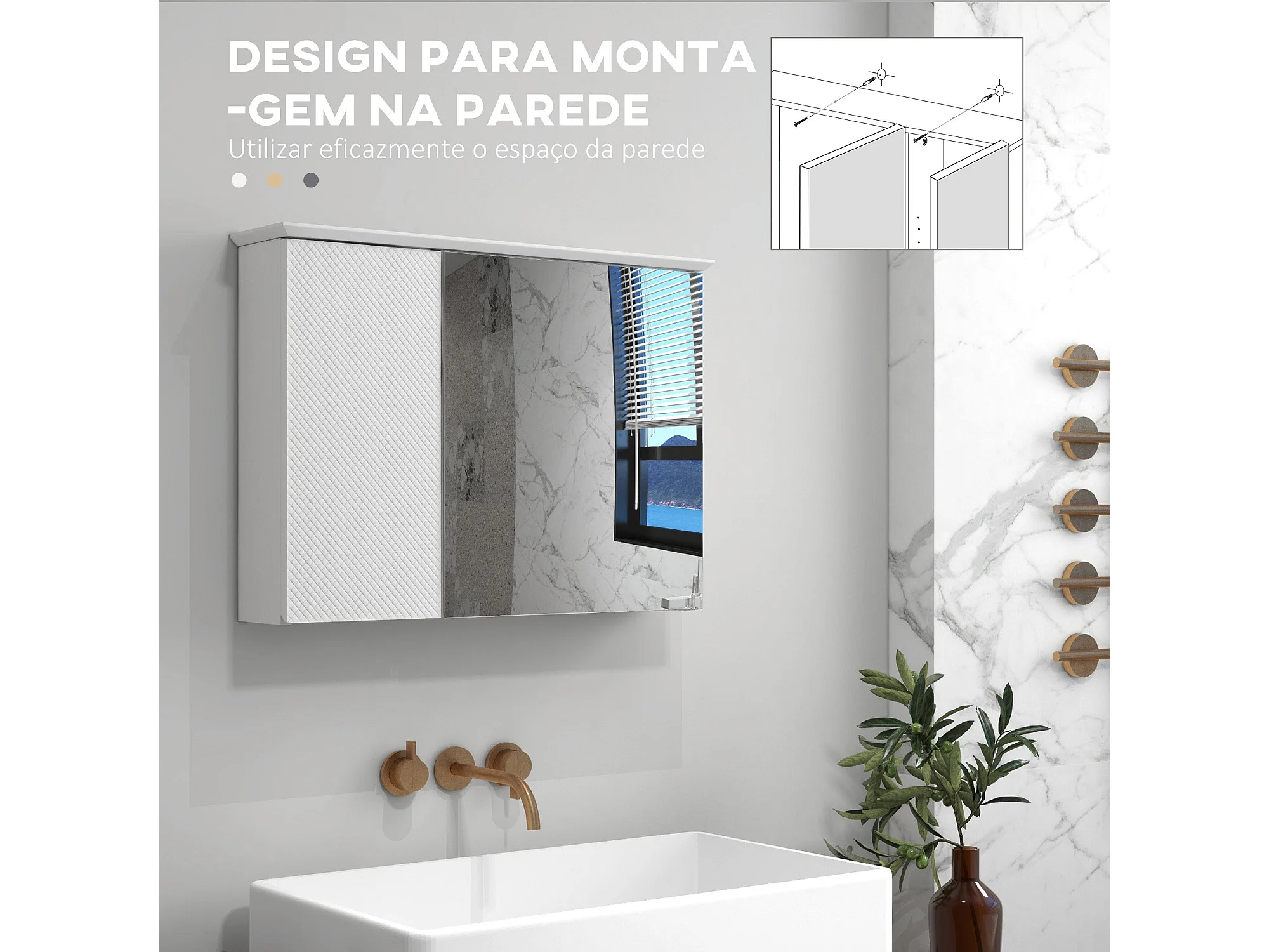 Armário de banheiro suspenso na parede, com espelho de três peças