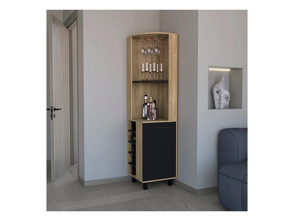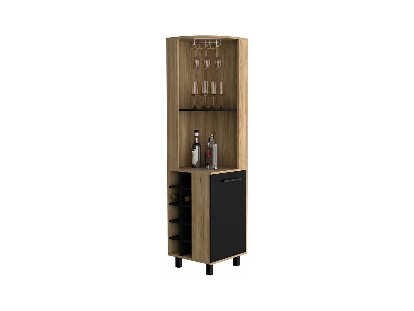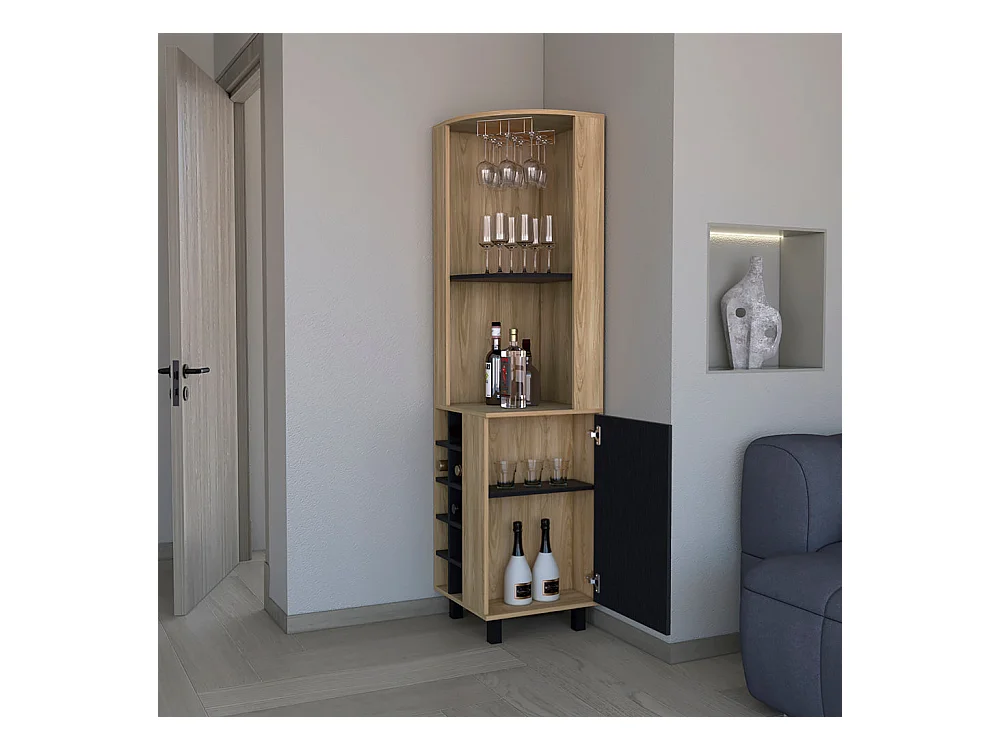 Armário bar de canto Syrah em melamina com quatro prateleiras, oito prateleiras para garrafas e suporte para copos, 180.6 X 46.9 X 46.9 cm , Preto