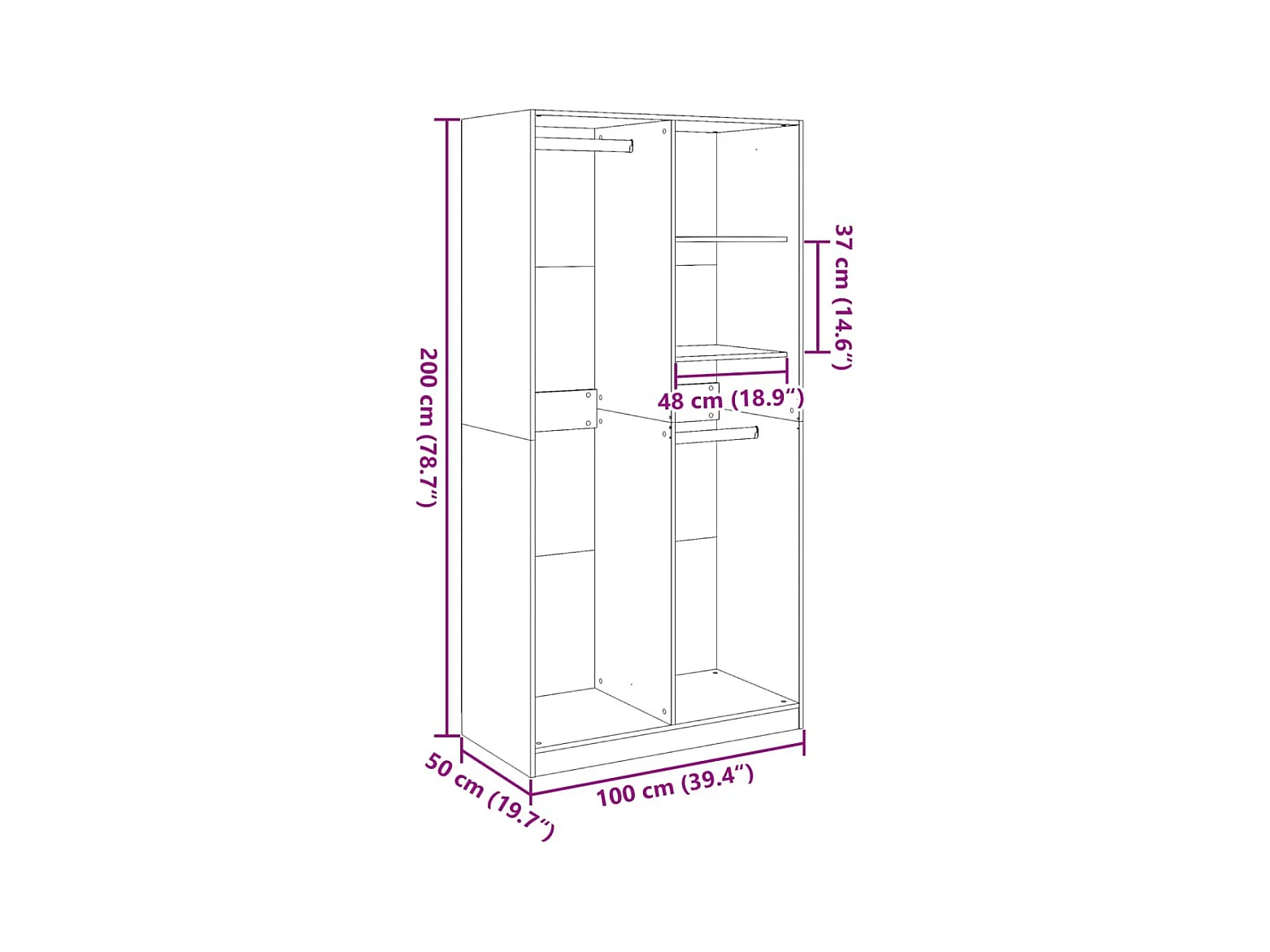 Armário de carvalho fumê 100x50x200 cm madeira engenharia
