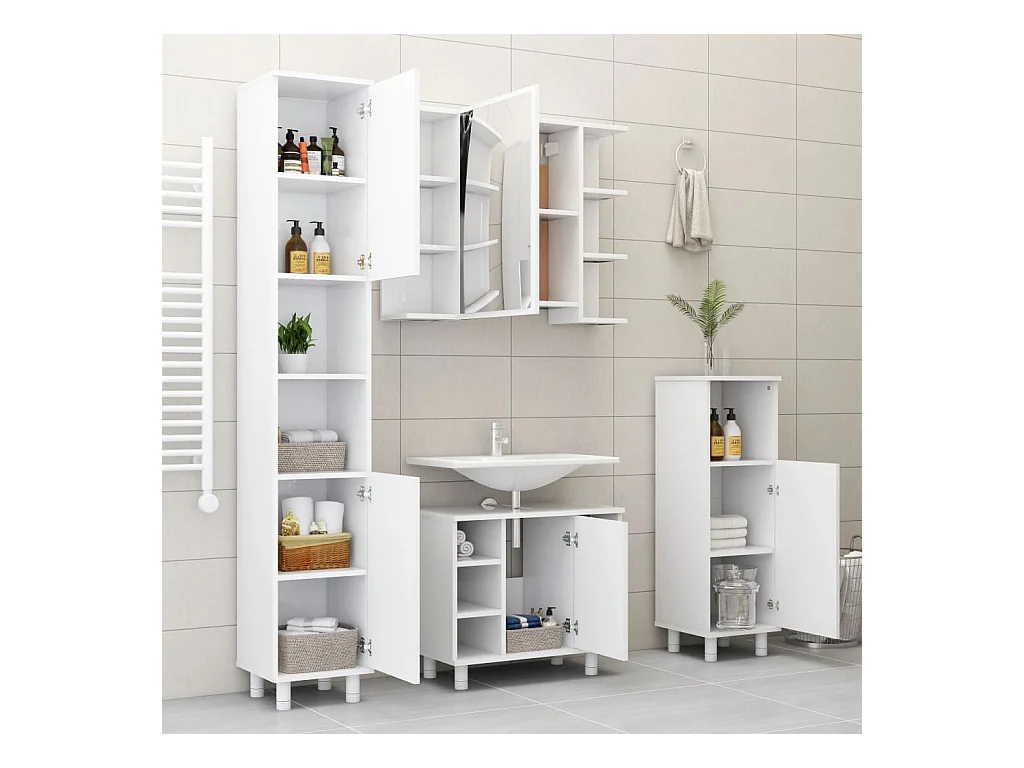 Armário casa de banho derivados de madeira branco brilhante