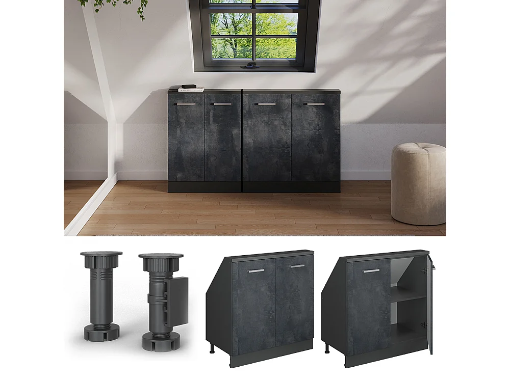 Armário de cozinha para sótão inclinado concreto preto 80x46x81.6 r-line