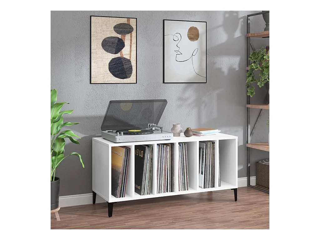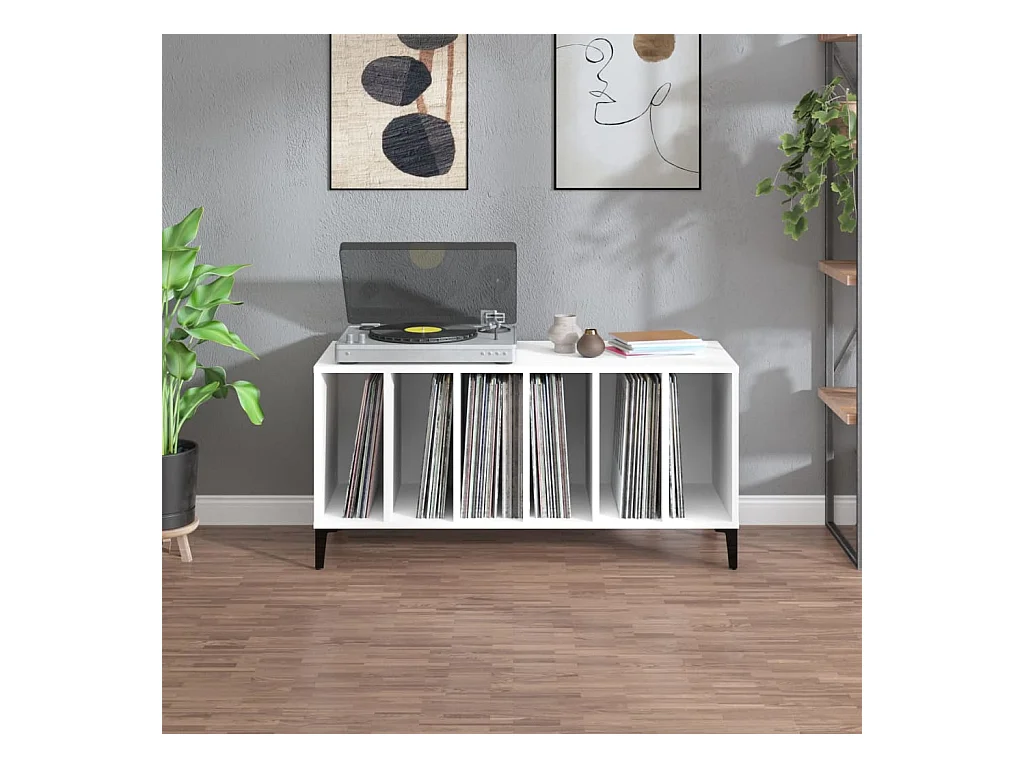 Armário de discos branco brilhante 100x38x48 cm madeira projetada