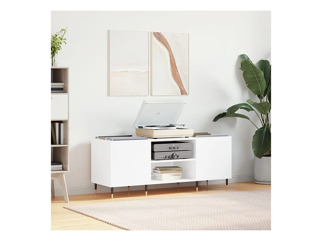 Armário de discos branco 121x38x48 cm madeira projetada