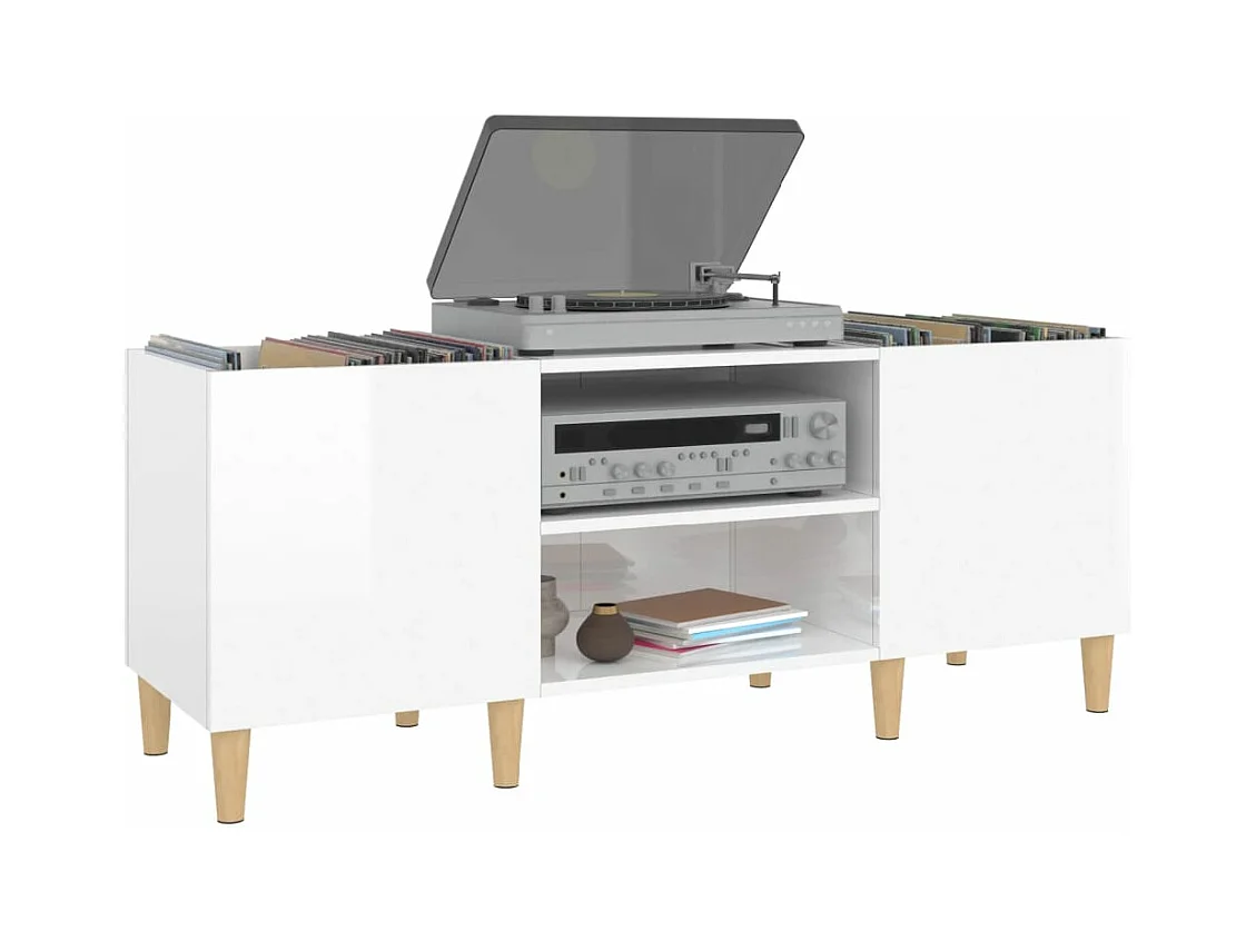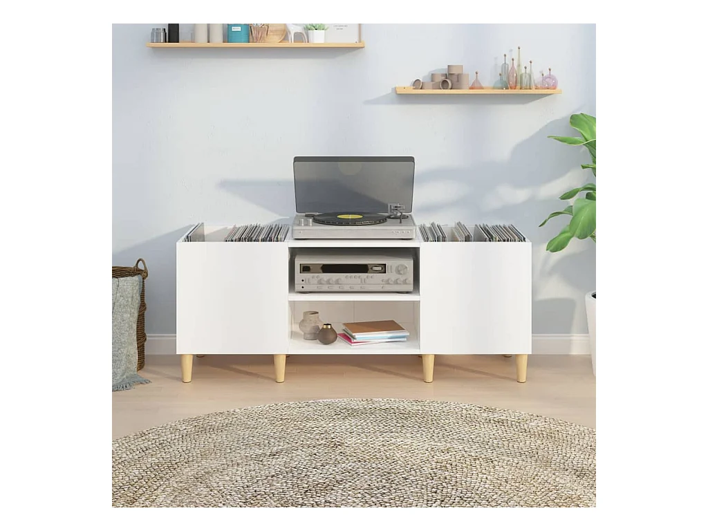 Armário de discos branco brilhante 121x38x48 cm madeira projetada