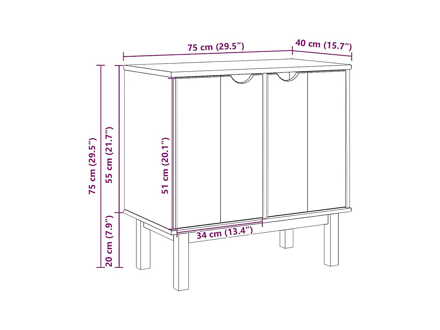 Armário de entrada OTTA 75x40x75 cm madeira maciça de pinho