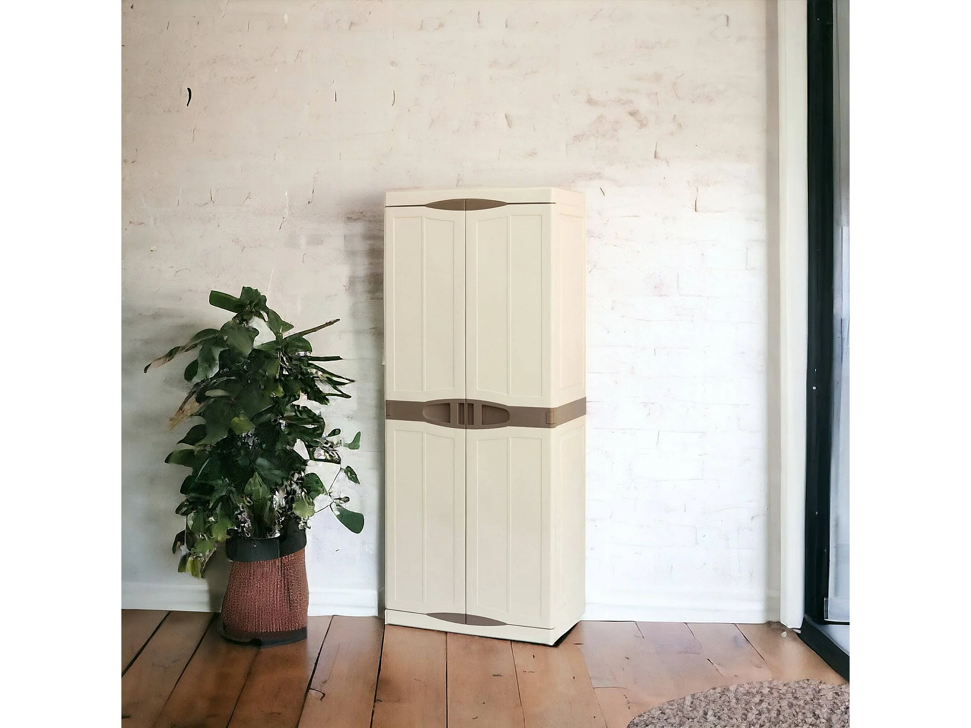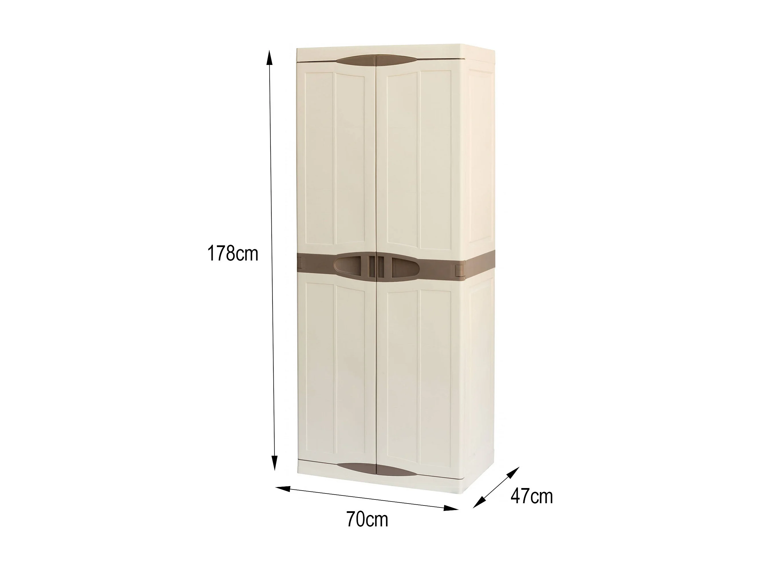 Armário de exterior Dbattistin, Armário de varanda multiuso, Armário exterior de 2 portas, 100% Made in Italy, Bege e MArrone, Acabamento elegante, 70x47h179 cm