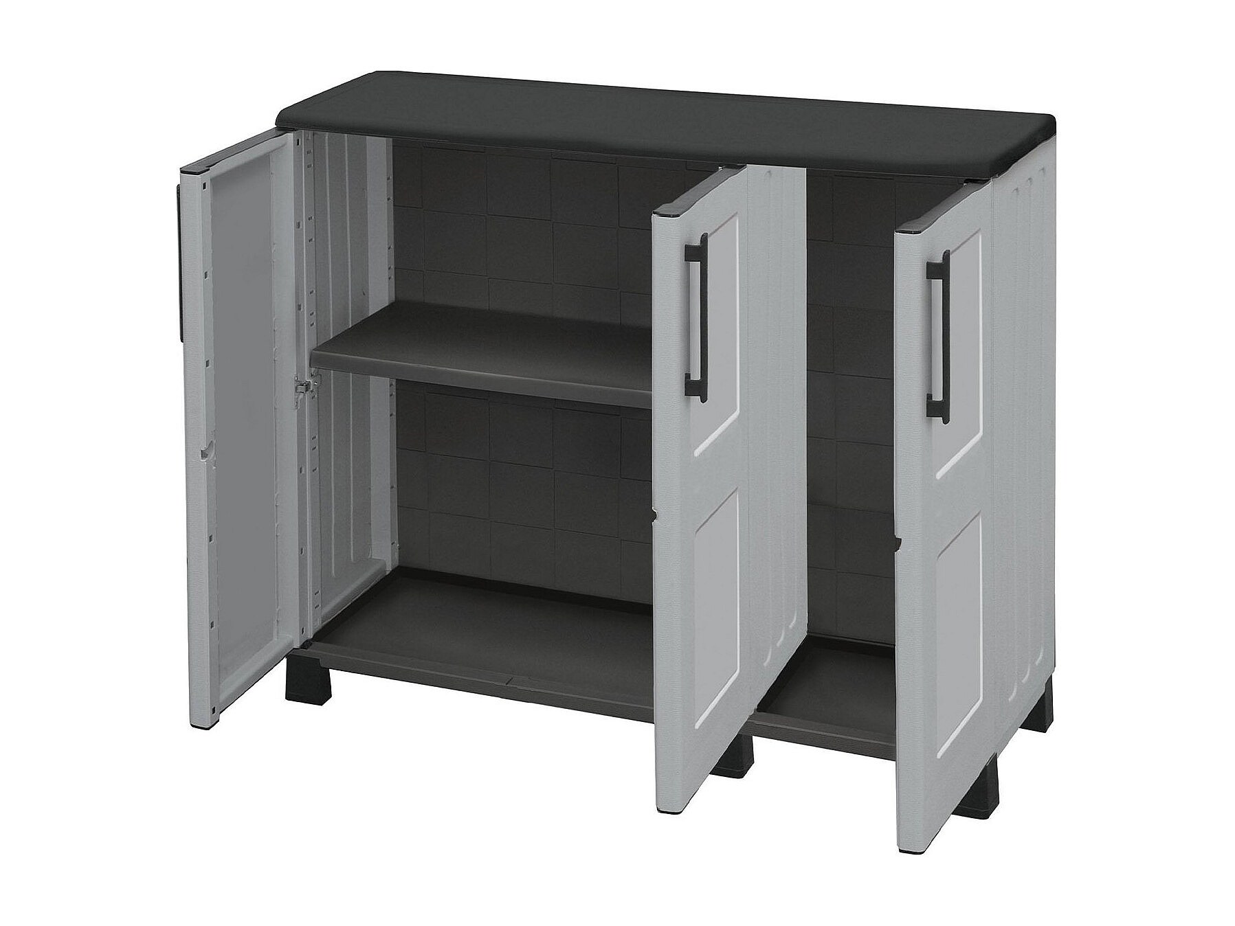 Armário multiuso de exterior ou interior, armário com 3 portas e 1 prateleira em polipropileno, 100% Fabricado em Itália, 102x37h84 cm, Cor Cinzento
