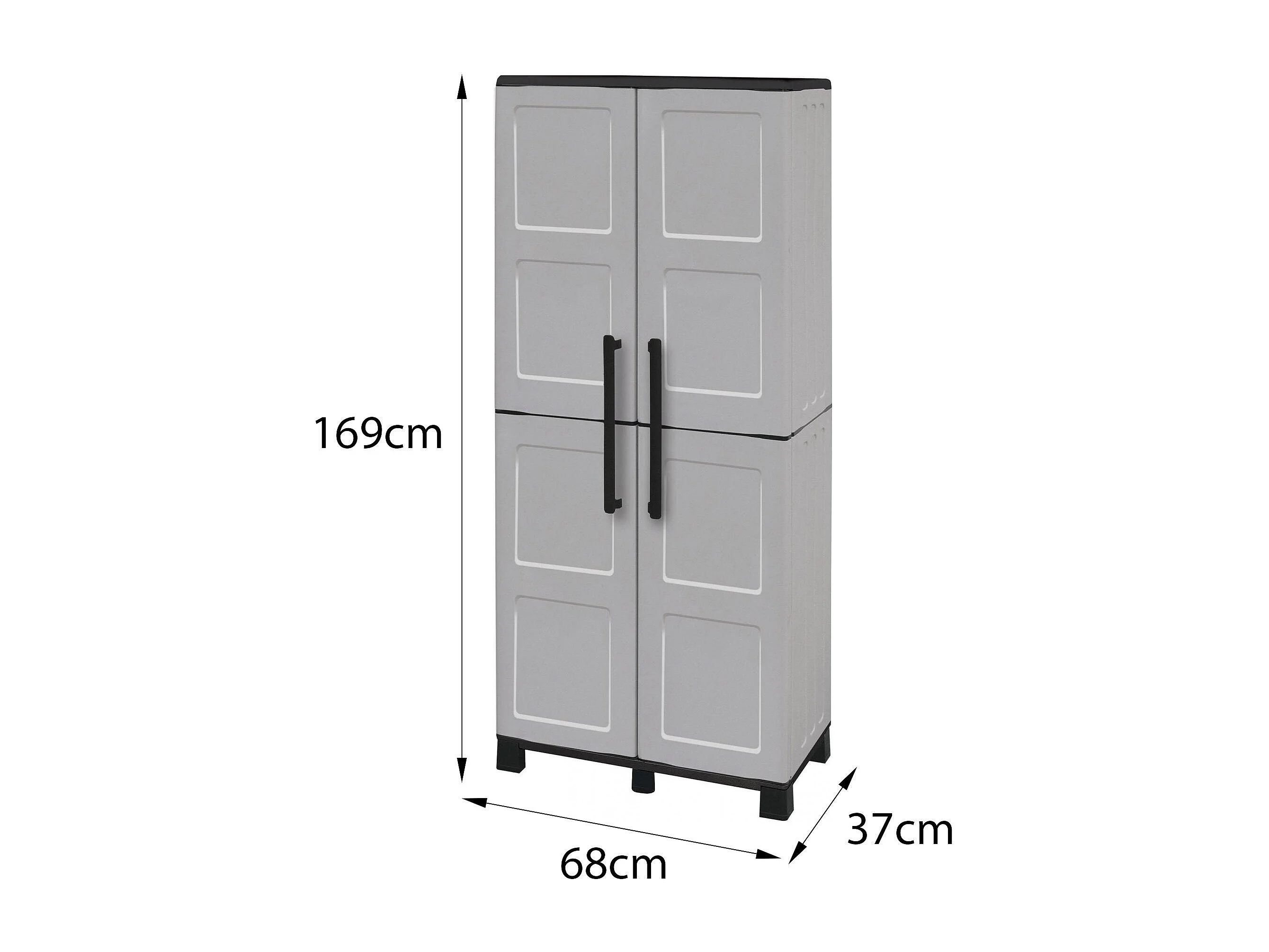 Armário de exterior Dbettell, Armário de vassouras, Armário de exterior de 2 portas, 100% Made in Italy, 68x37h169 cm, Cinza claro e preto, Acabamento de pintura