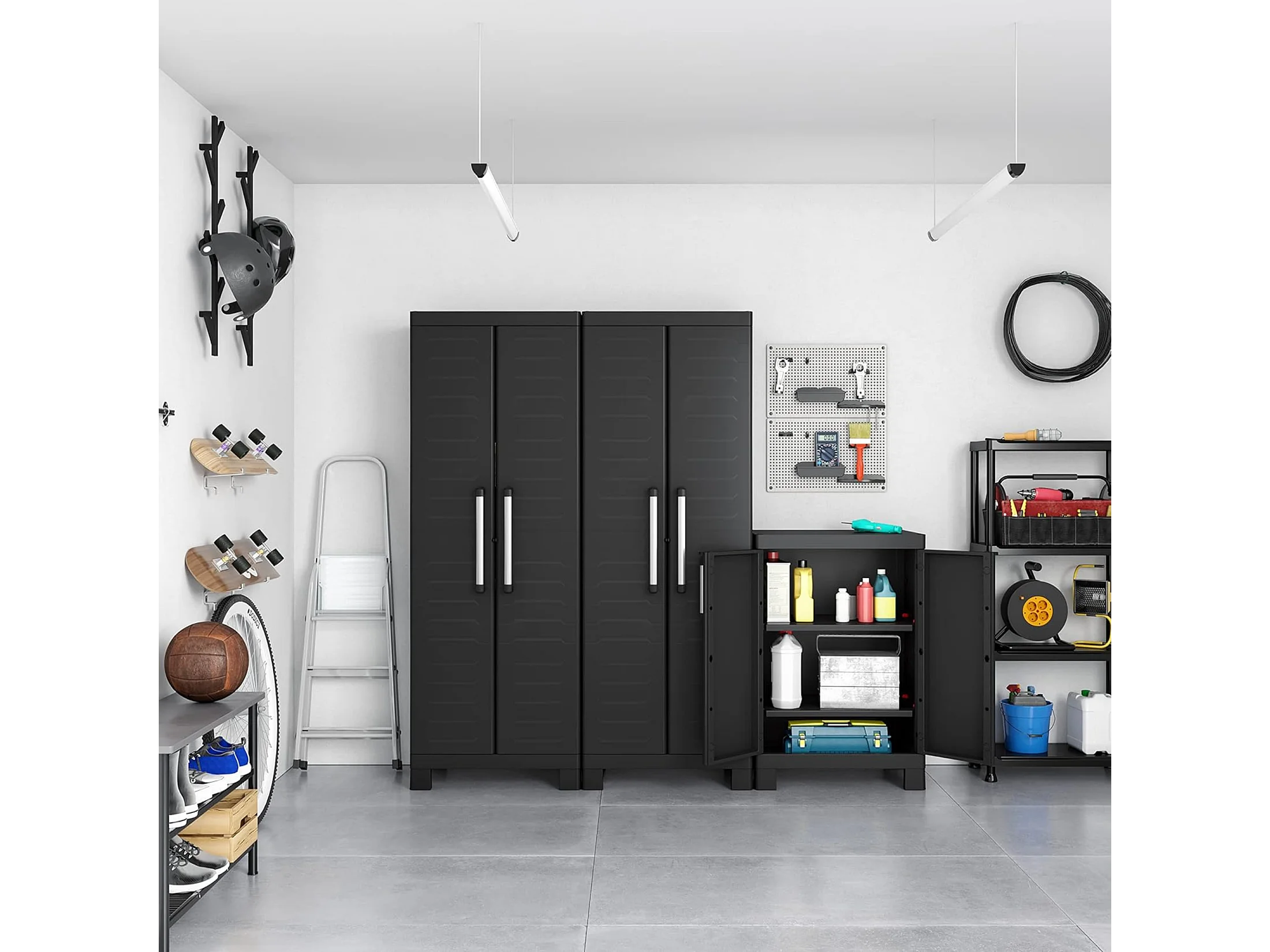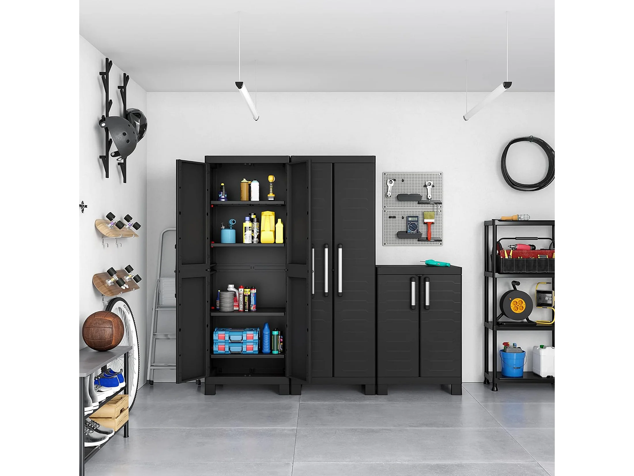 Armário de jardim "Cindy" com prateleiras interiores e pés elevados em resina, 65x45 cm 182h