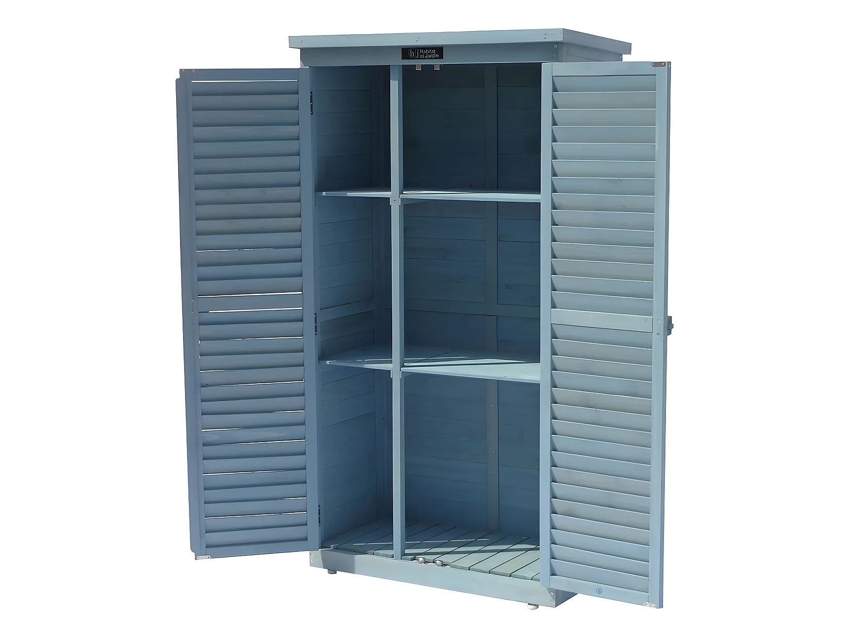 Armário de jardim "Space" em madeira de abeto com 2 prateleiras e fechadura - Azul céu