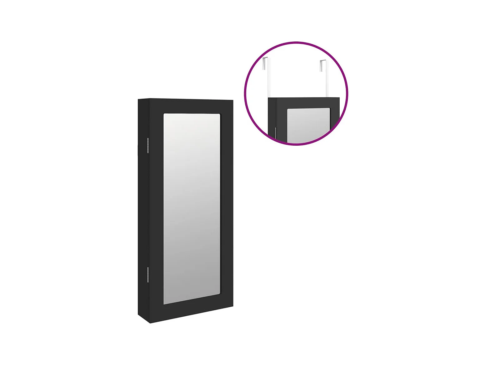 Armário de joias organizador de móveis para quarto vestiário banheiro com espelho de parede 37,5 x 10 x 106 cm preto 02_0022843