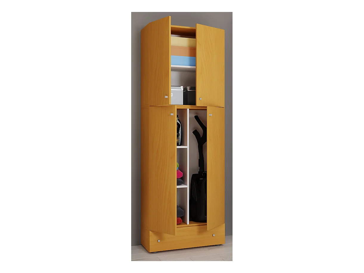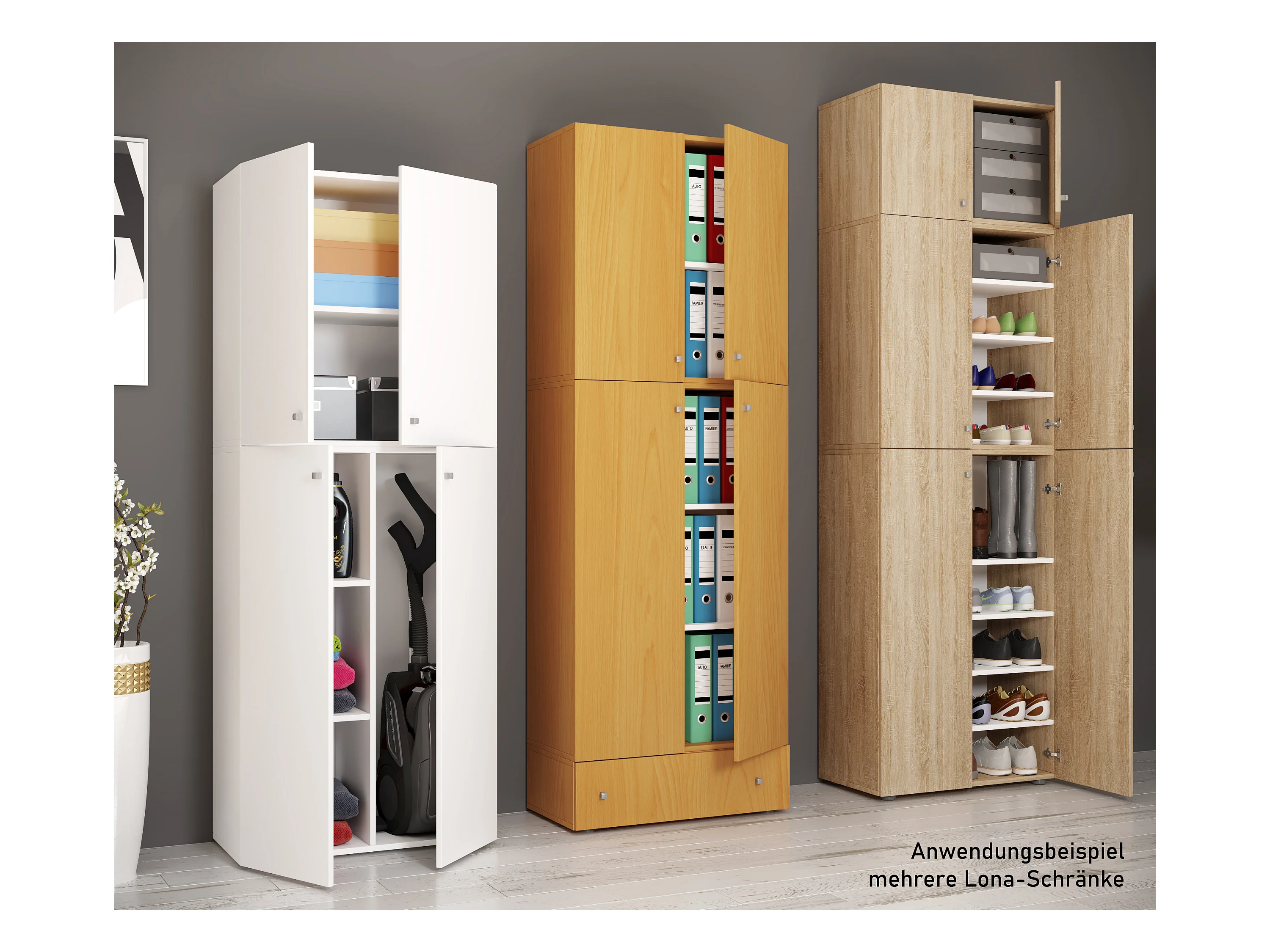 Armário de vassoura de madeira VCM | 6 compartimentos | Dimensões: A. 200 x L. 70 x P. 39 cm | Armário doméstico | Armário multiúso | Gaveta extra - Lona (Beech)
