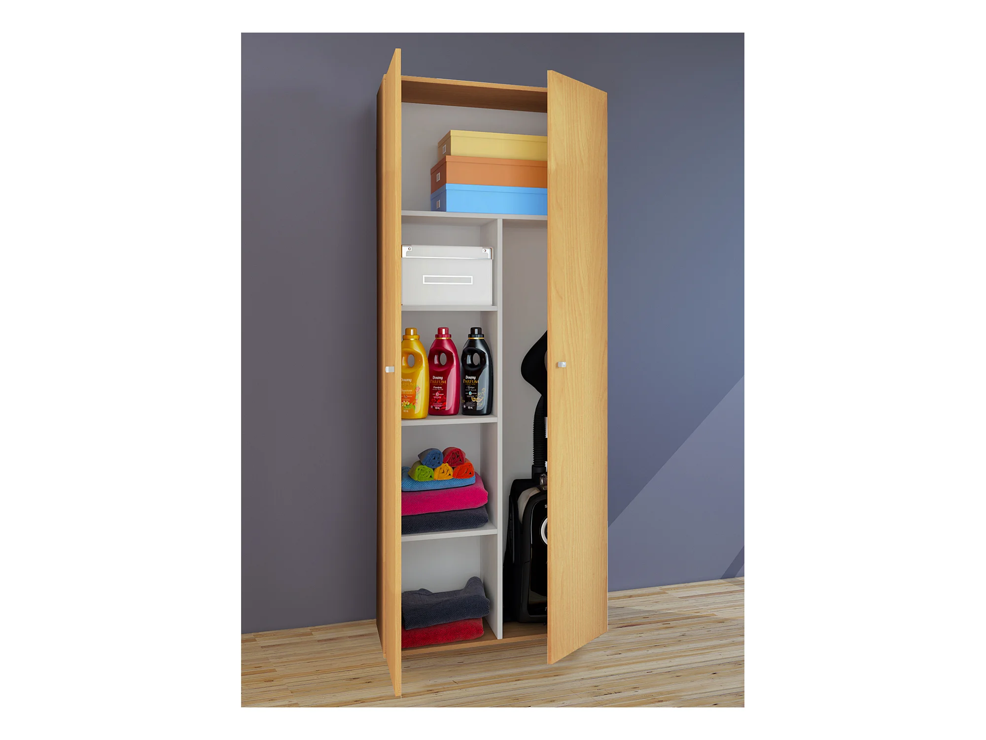 Armário de vassoura de madeira VCM | 6 compartimentos | dimensões aprox. L. 70 x A. 178 x P. 40 cm | Armário doméstico | Armário multiúso - Vandol (Beech)