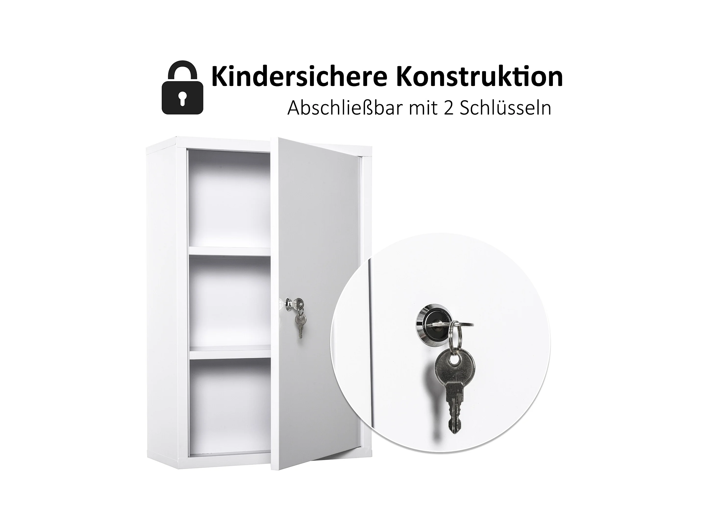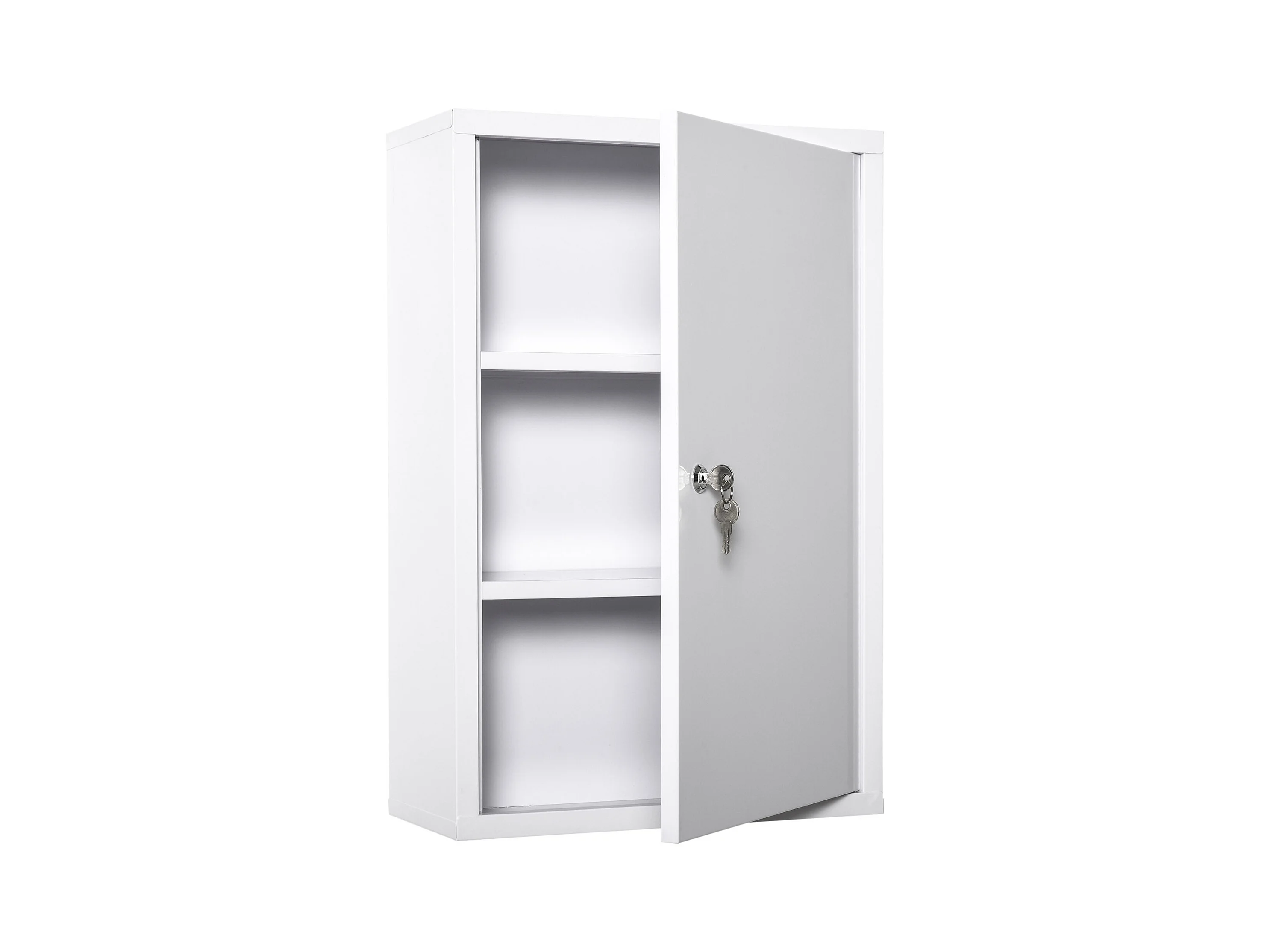 Armário de medicamentos de parede em aço com fechadura 3 níveis para banheiro 40x18x60cm branco
