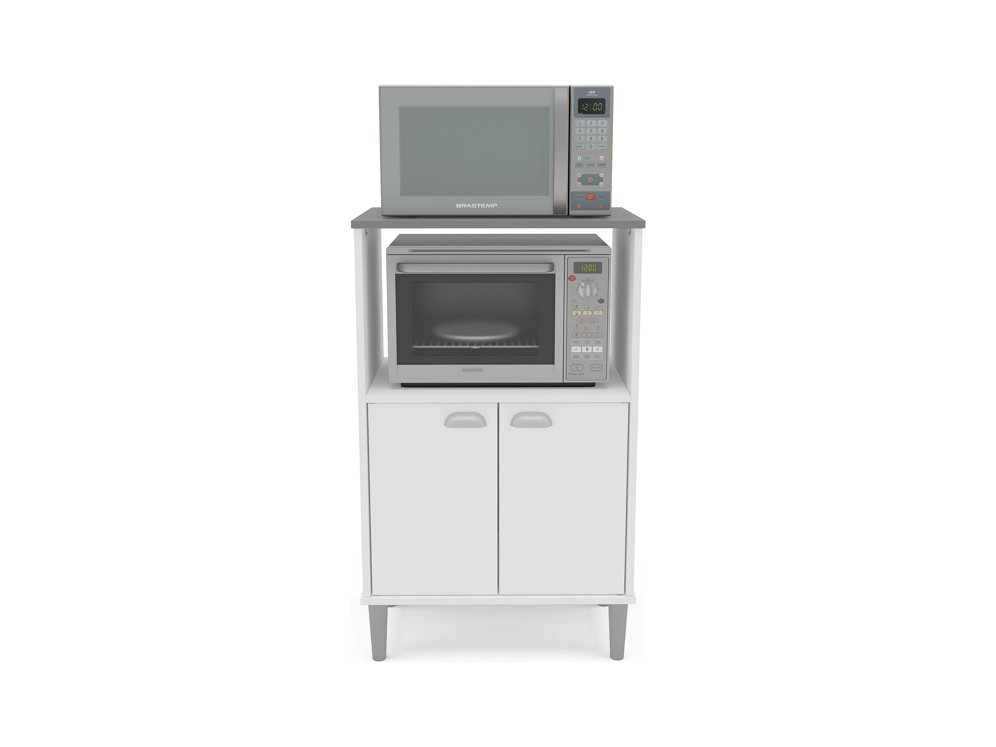 Carrinho para micro-ondas prático e funcional com 2 portas e 4 rodas