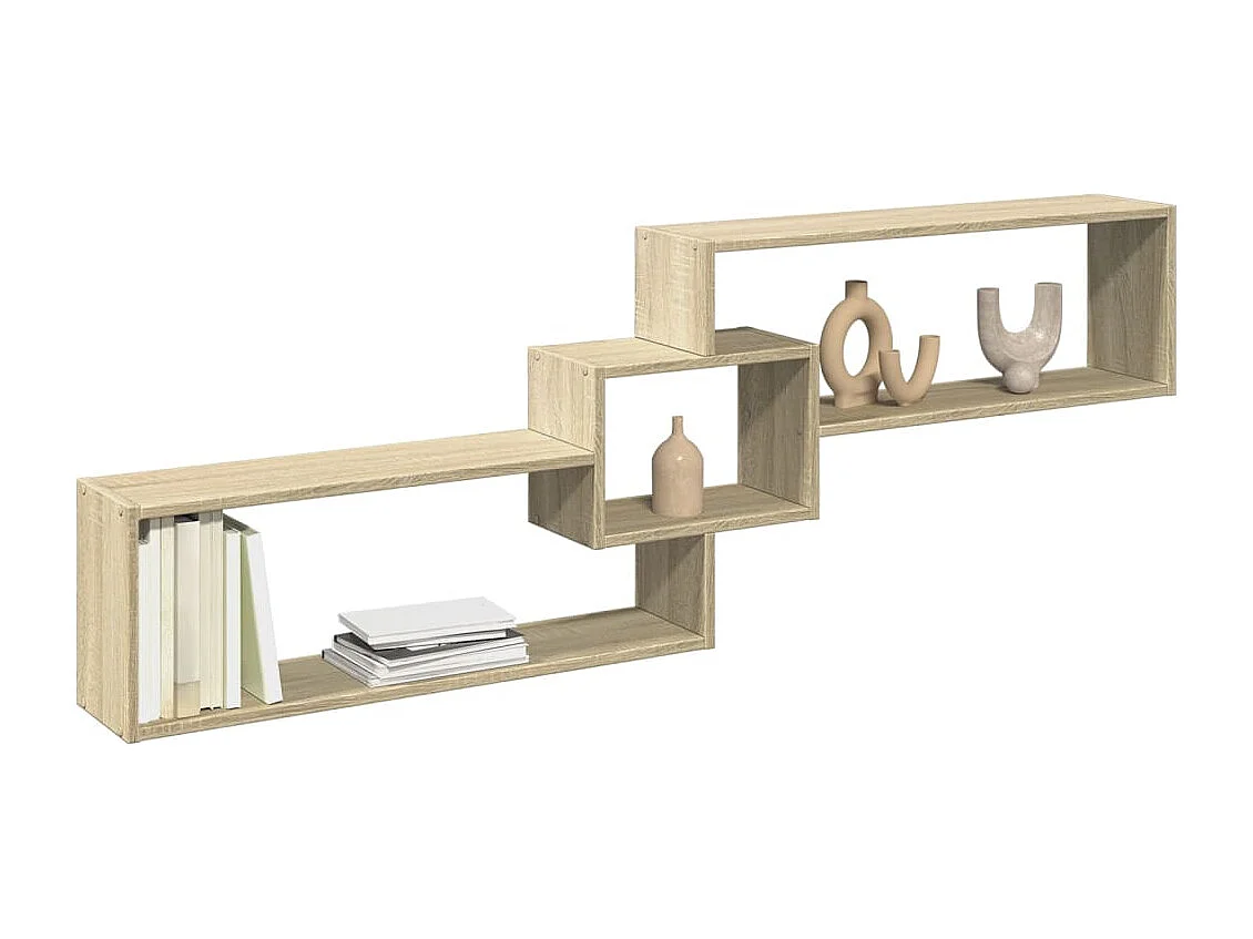 Conjunto de prateleiras de parede de 3 peças com barras em carvalho Sonoma e madeira projetada