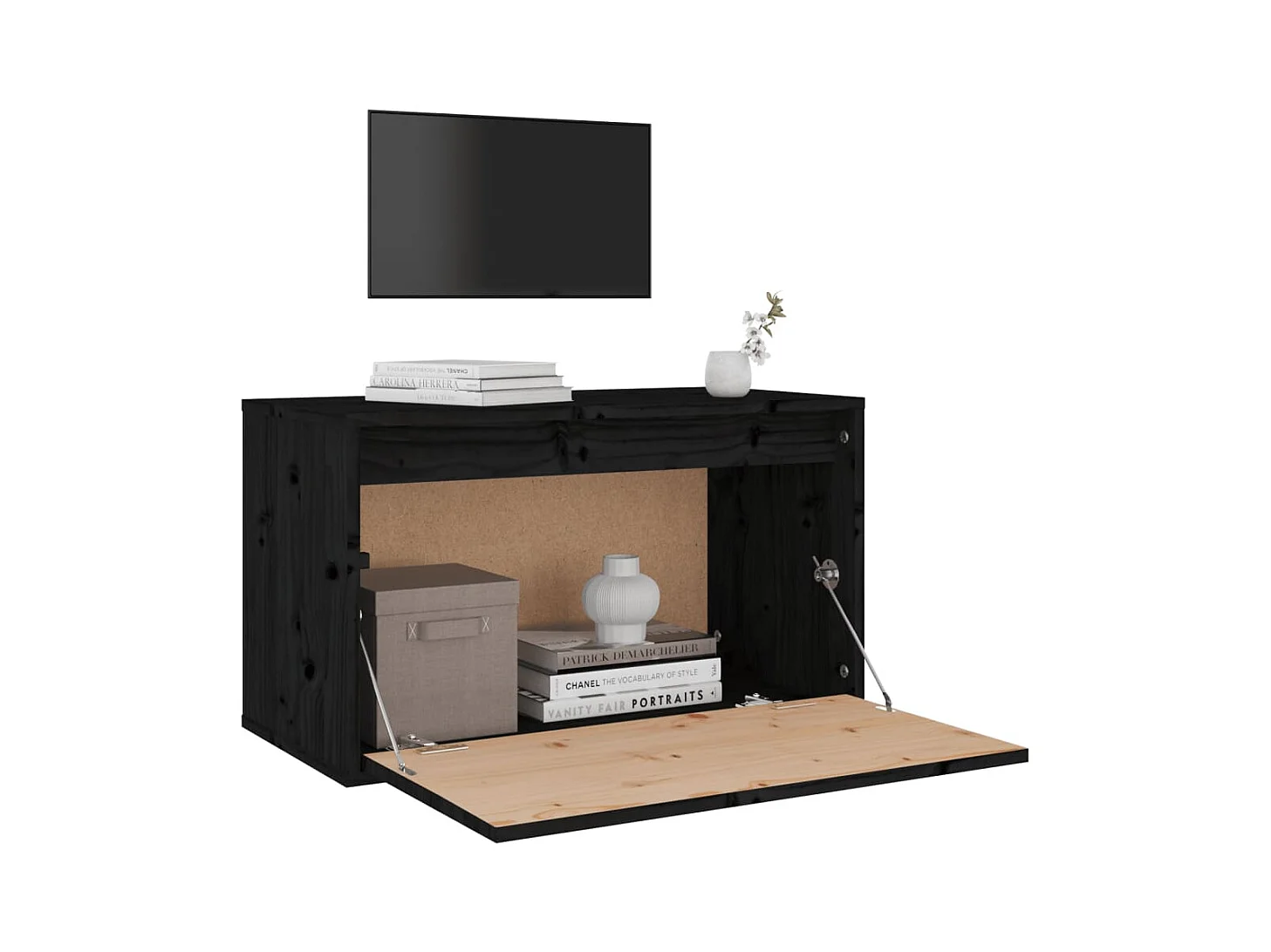 Armário de parede 60x30x35 cm madeira de pinho maciça preto
