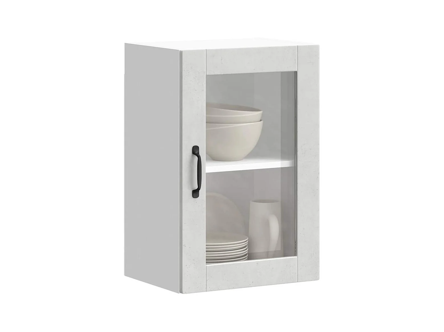 Armário de parede de cozinha porta vidro Kalmar concreto cinza
