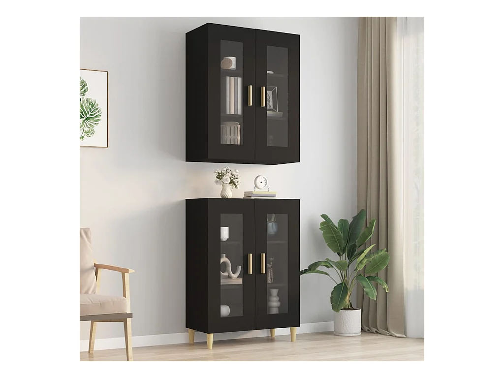 Móveis de parede 2 peças derivados de madeira preto