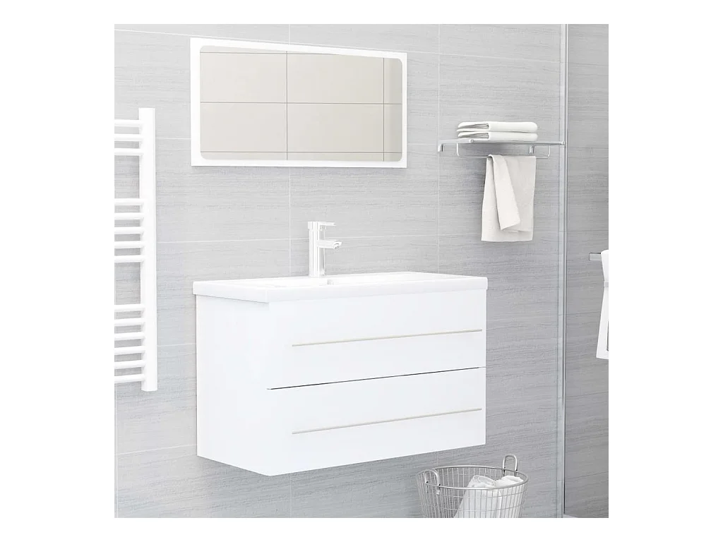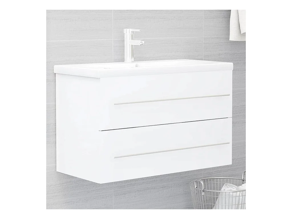 Armário de lavatório c/ lavatório embutido contraplacado branco