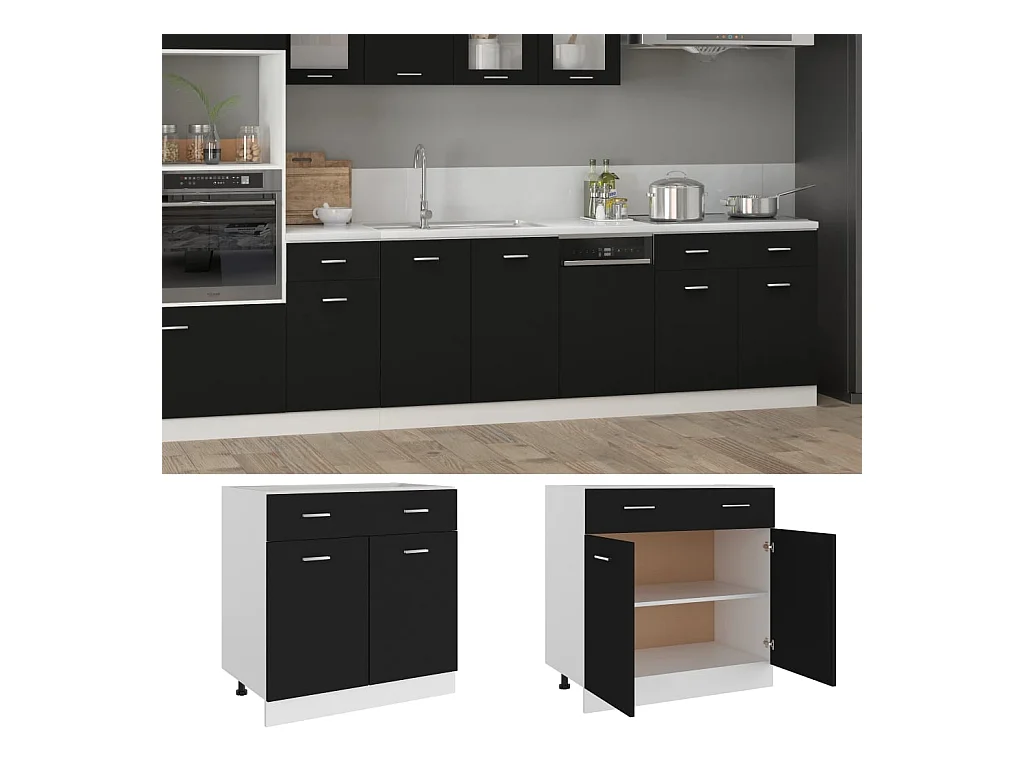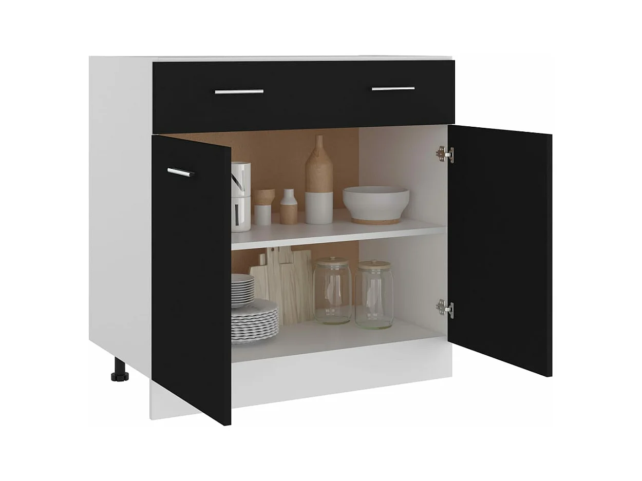 Armário de piso com gaveta Preto 80x46x81,5 cm Madeira sintética