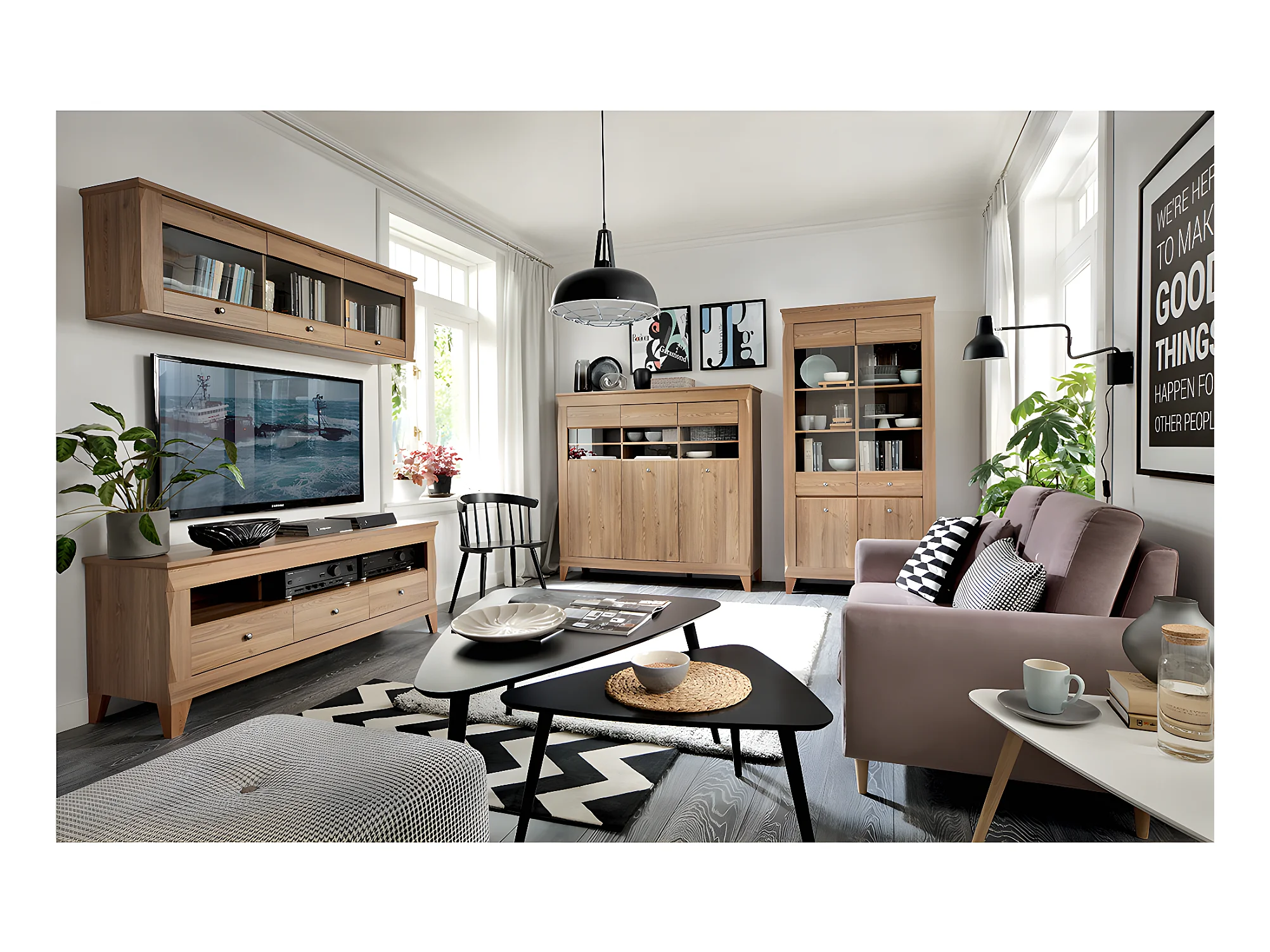 Armário de porcelana 2 portas 2 gavetas Raya madeira 150cm