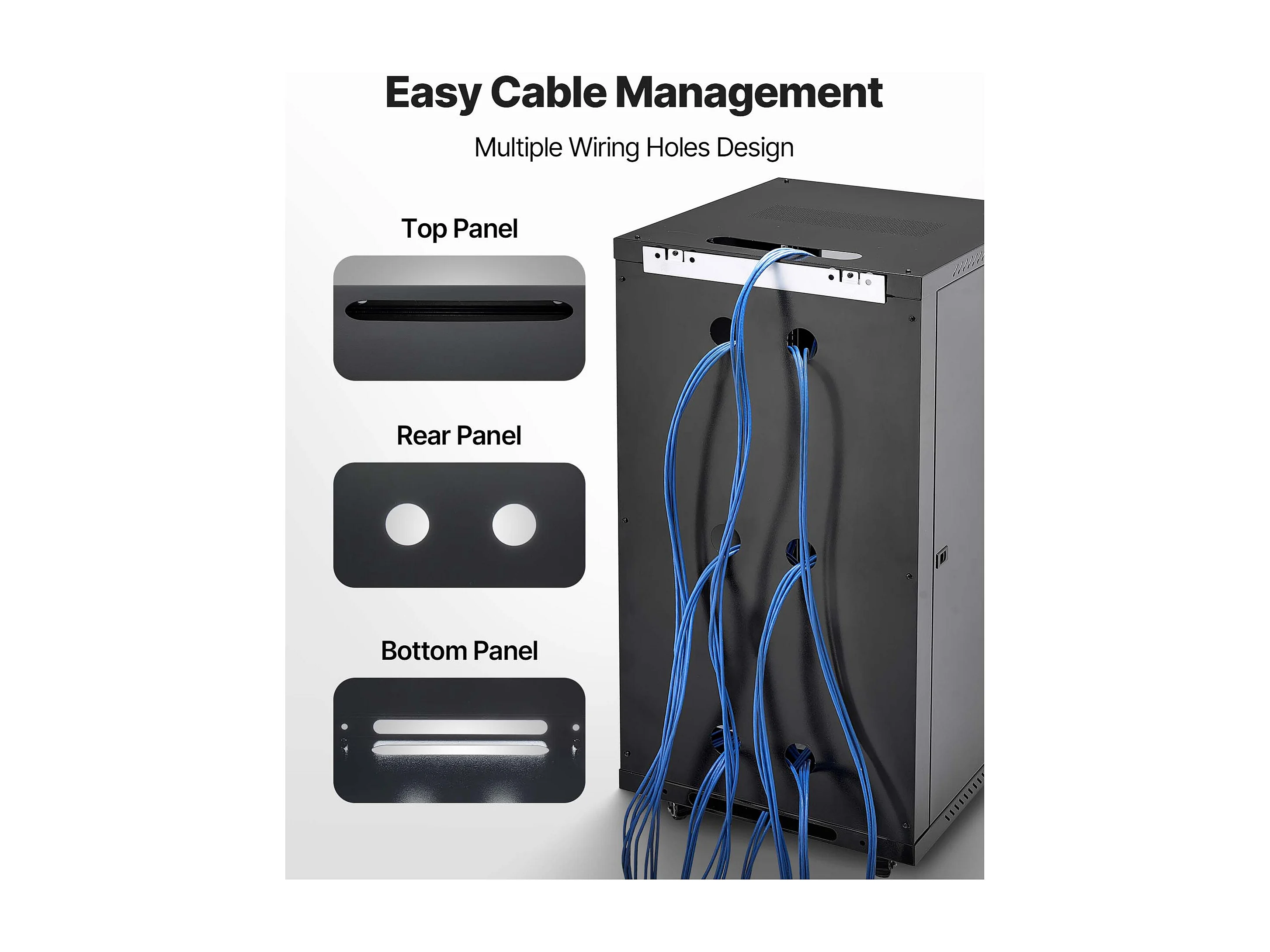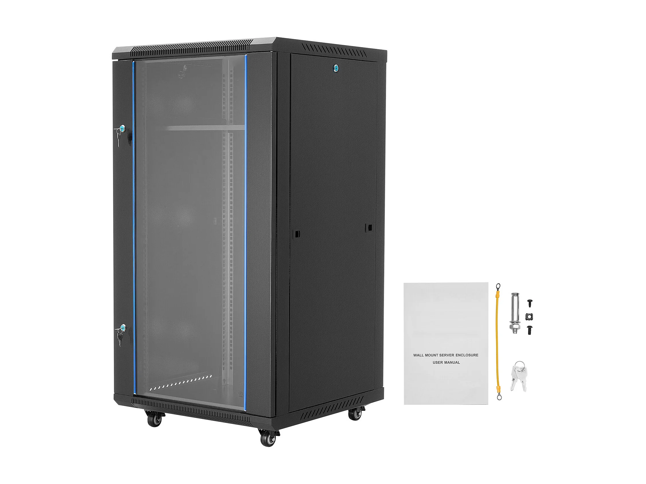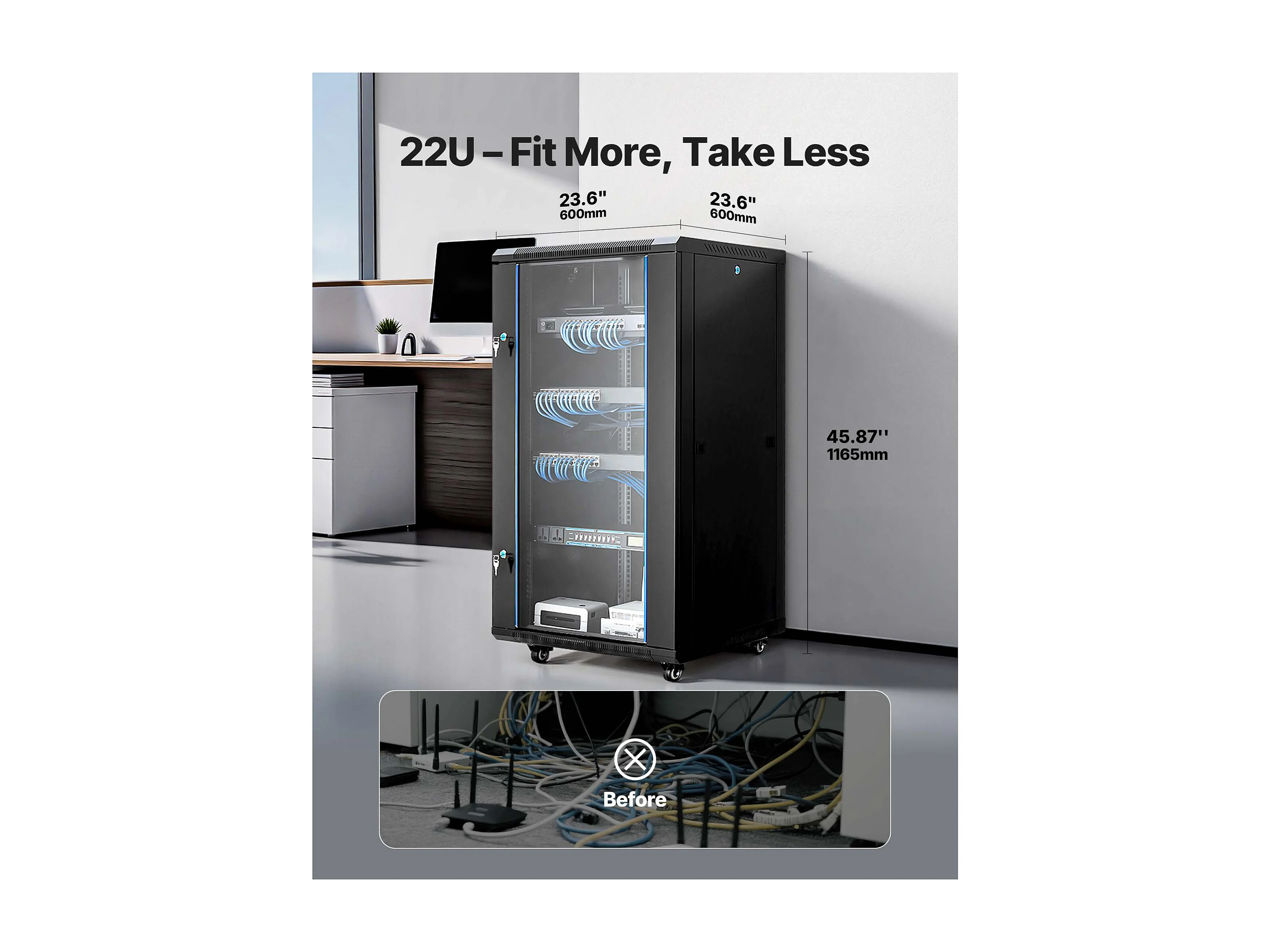 Armário de Rede SucceBuy 22U, Rack Servidor Montagem de Parede, Bay de Patch, Profundidade 60 cm, Carga 136 kg, com Porta Travável Vidro Temperado