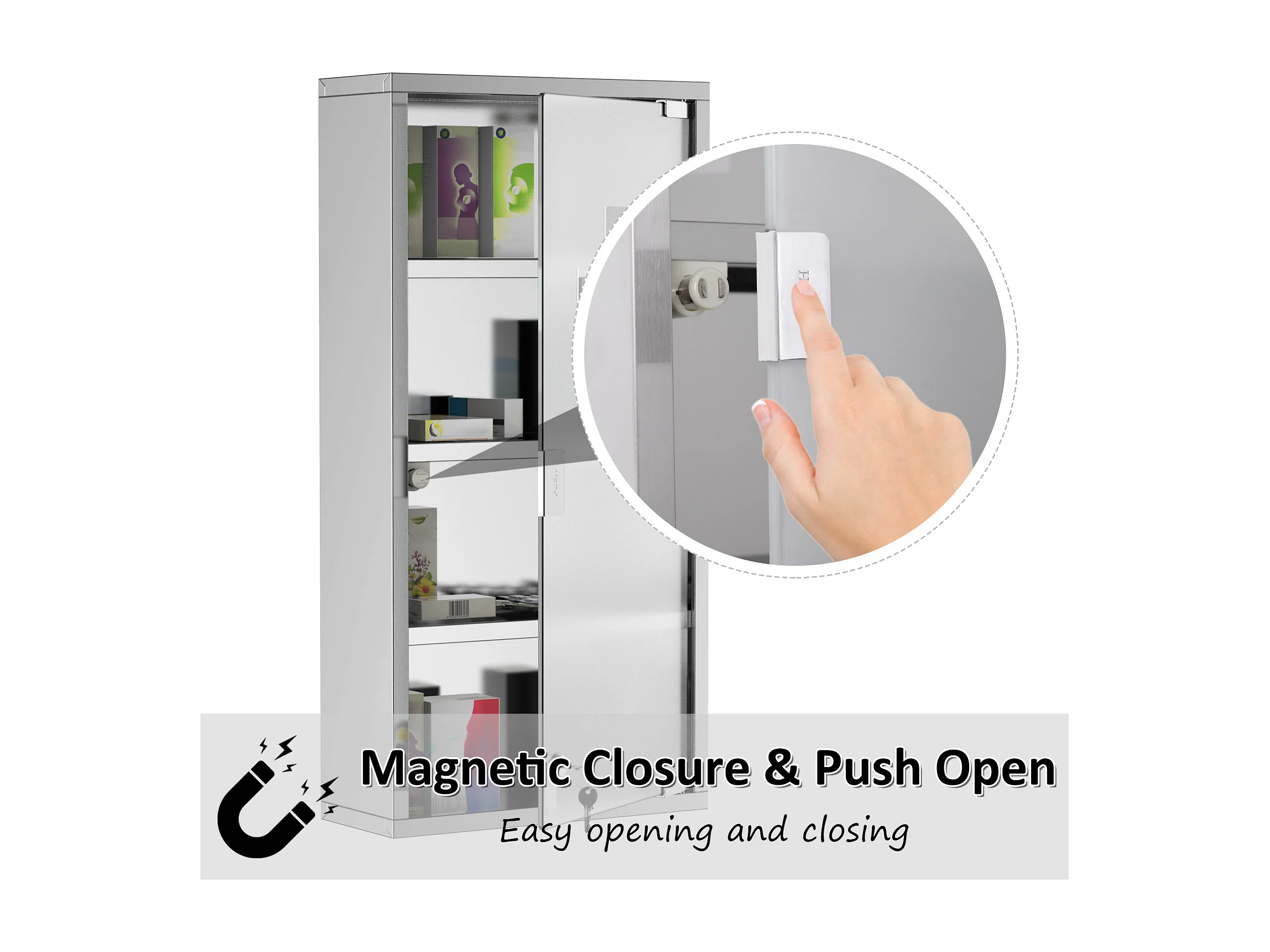 Armário de medicamentos de parede em aço com fechadura 3 níveis para banheiro 40x18x60cm branco
