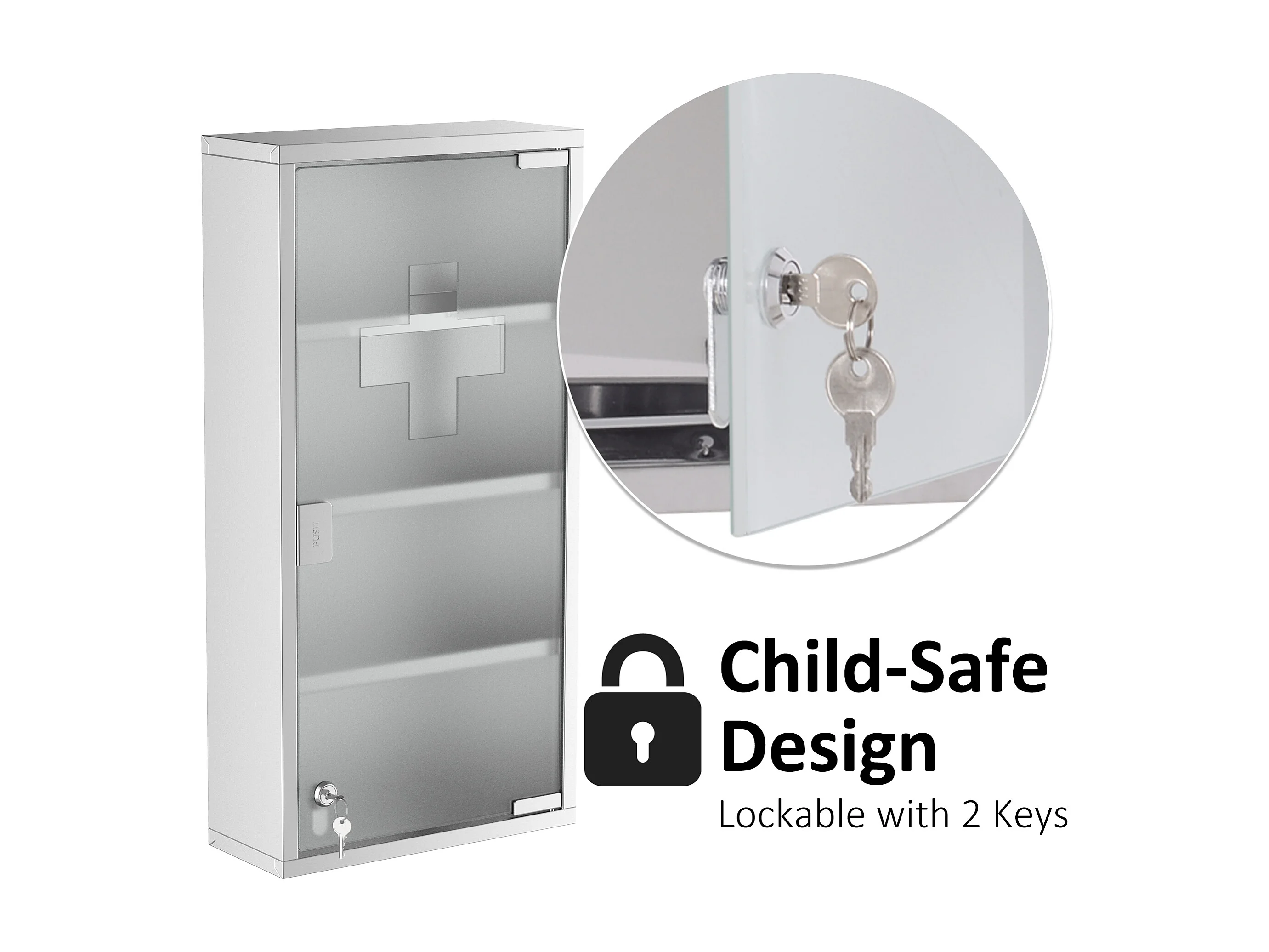 Armário de remédios de metal para parede com porta de vidro fosco com fechadura 60x30x12 cm
