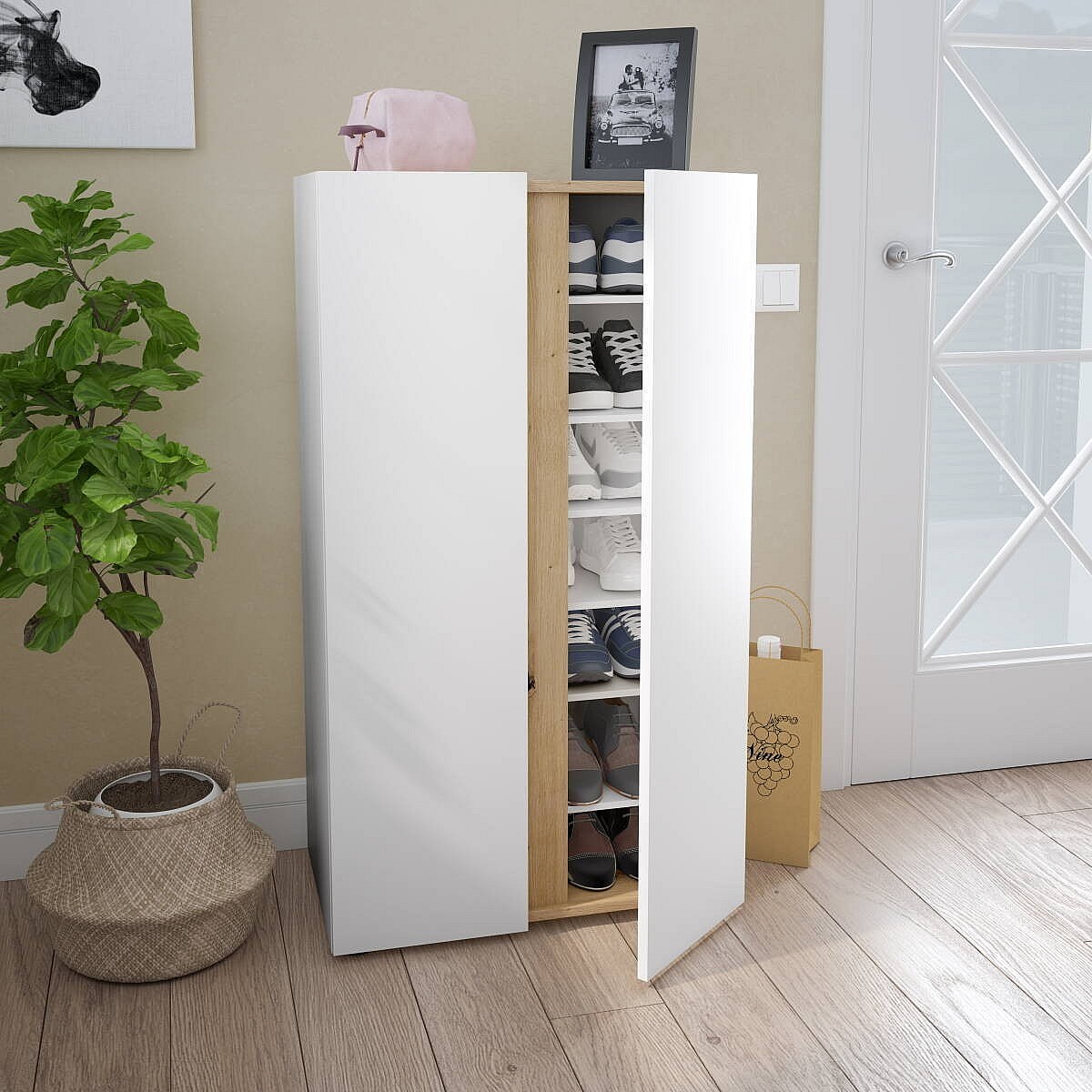 Armário de sapatos nórdico corredor carvalho Nodi branco Artik 57 cm