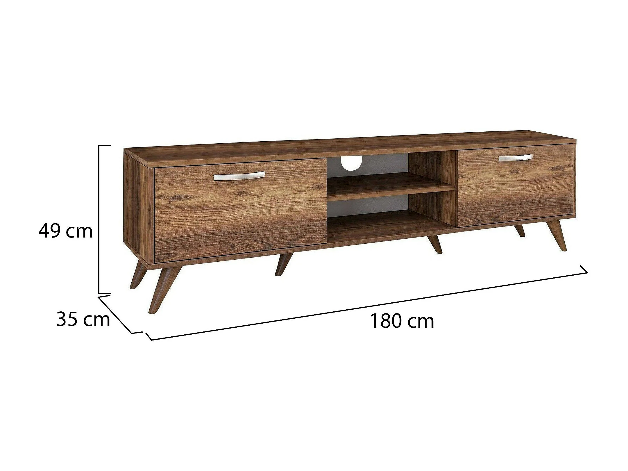 Armário de suporte de TV Dbarar, Aparador de sala, Armário de TV baixo, Base de parede equipada, 180x35h49 cm, Nogueira