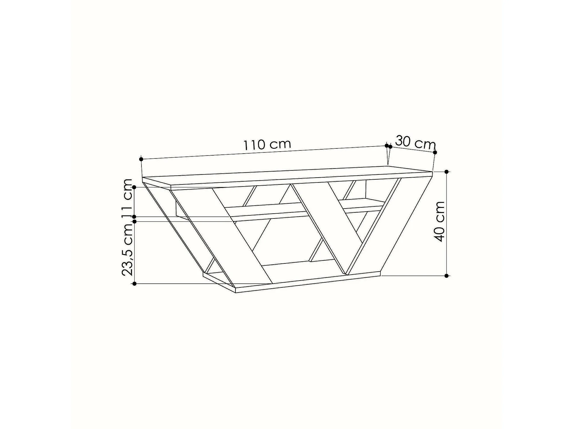 Armário de suporte de TV Dpellegr, Aparador de sala de estar, Armário de TV baixo, Base de parede equipada, 110x30h40 cm, Branco