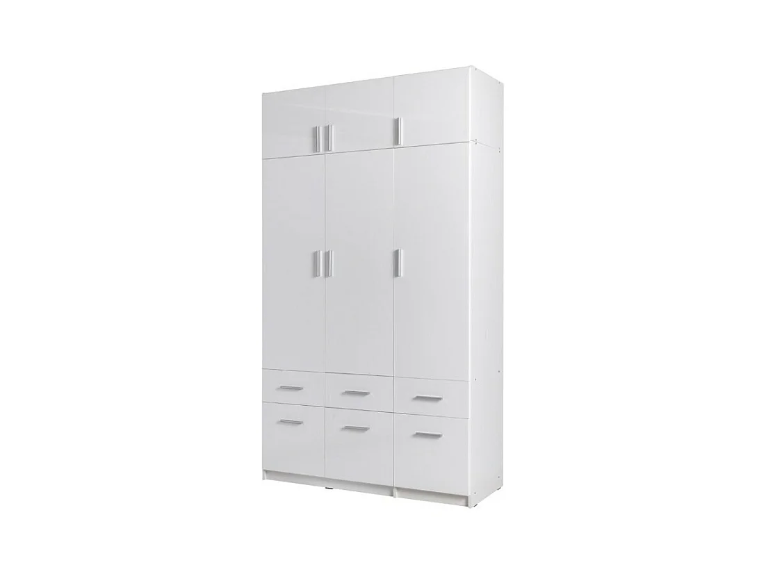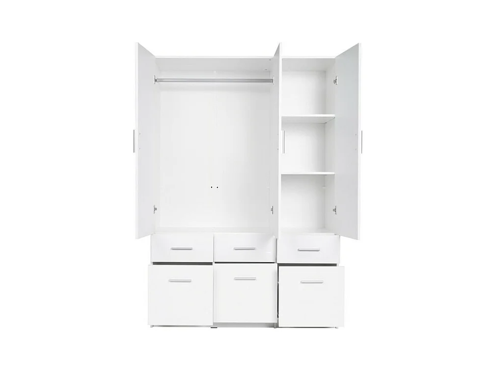 Armário de três portas e seis gavetas coleção FLEX, cor branco brilhante.