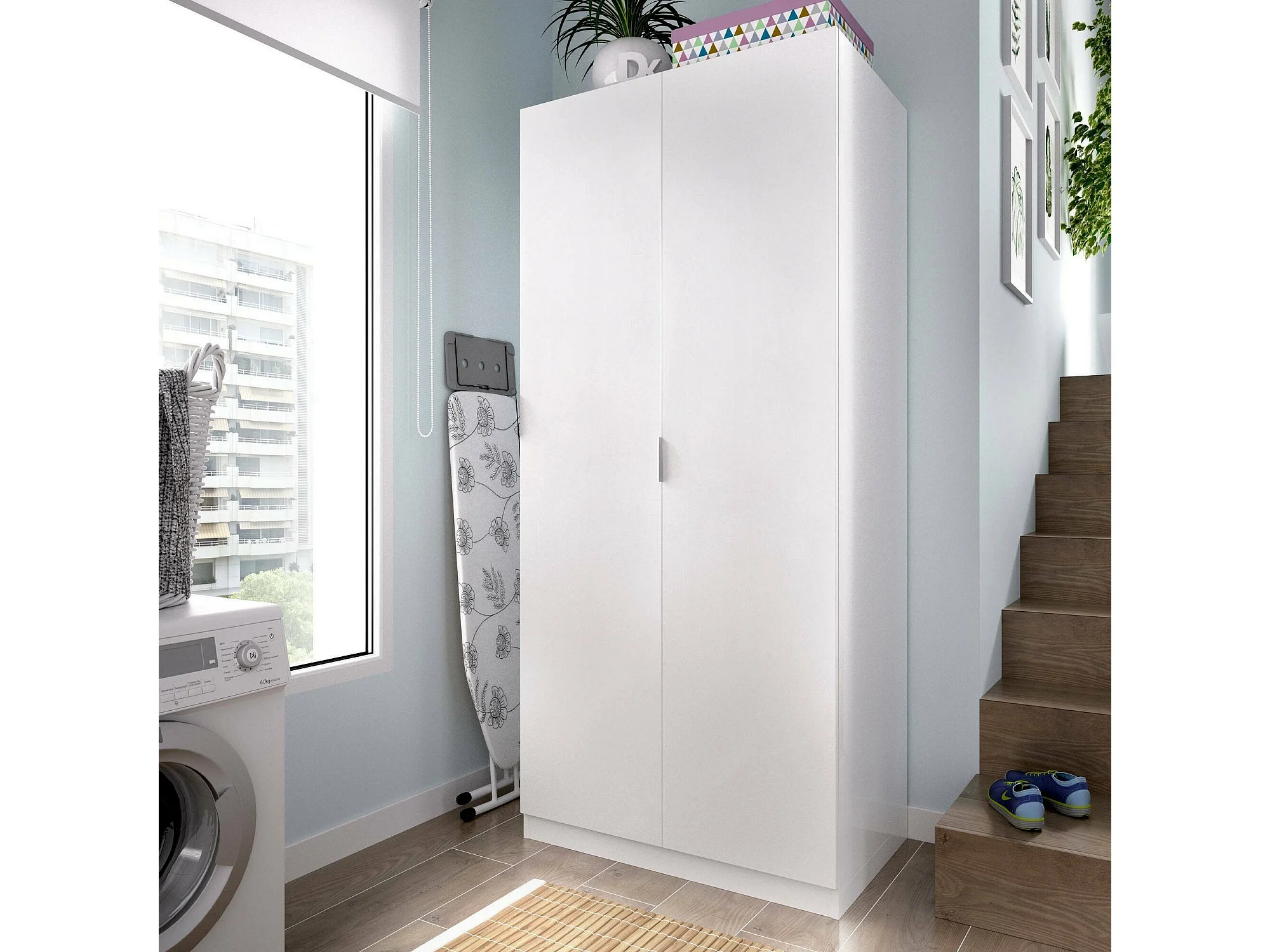 Armário Deder, Cabide para quarto, Armário com 2 portas de batente, 81x52h184 cm, Branco