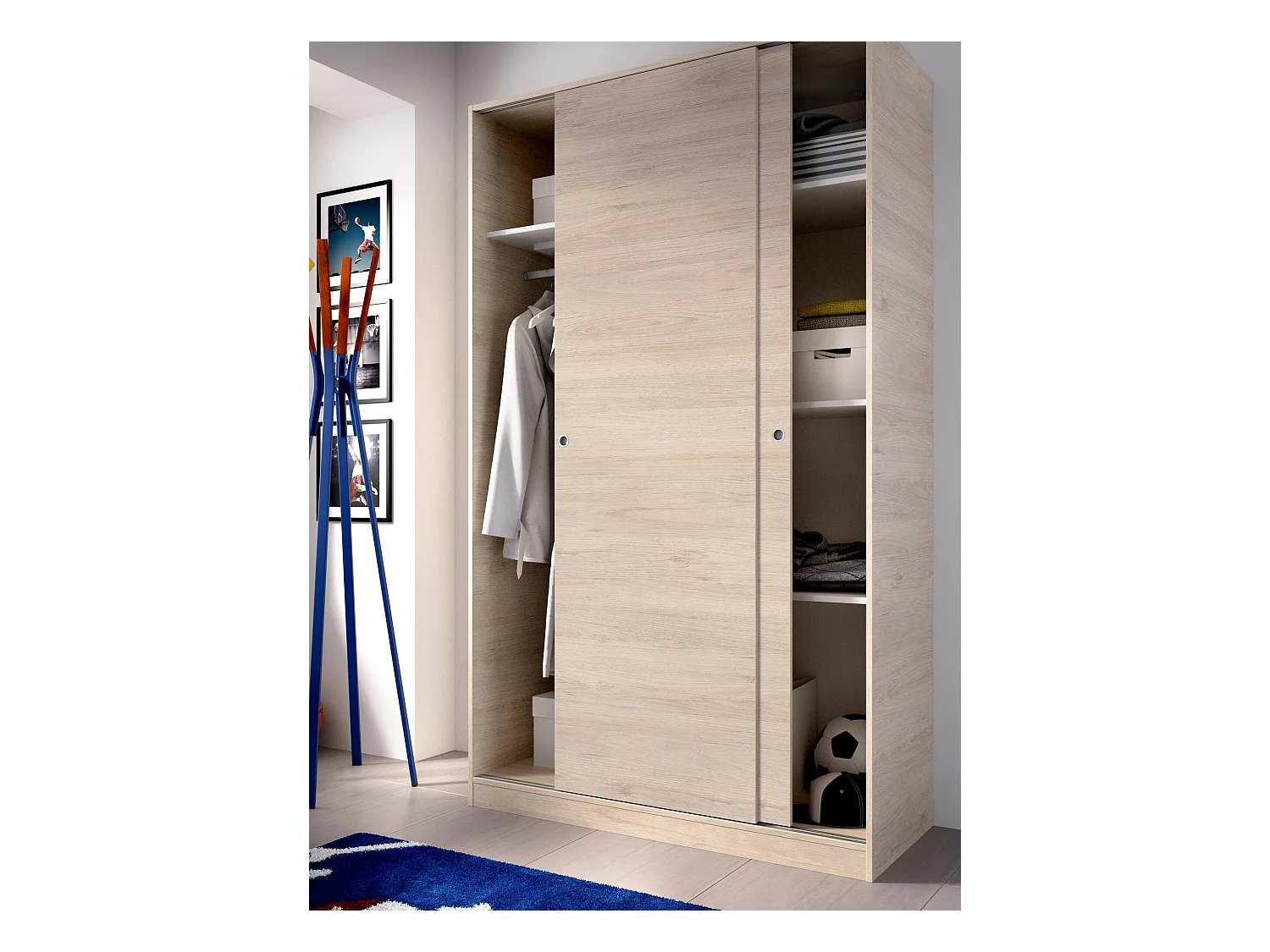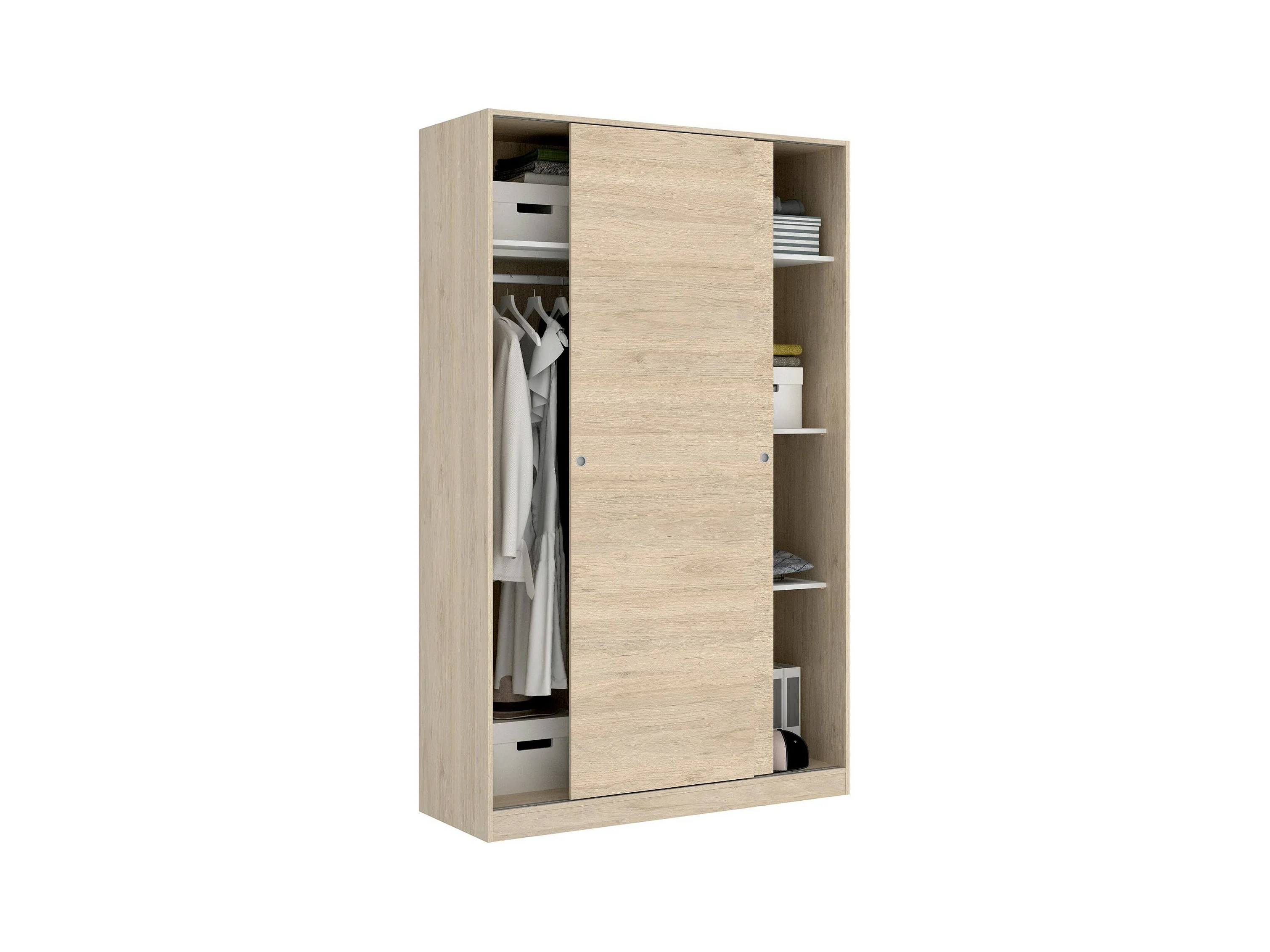 Armário Denali, Cabide para quarto, Armário com 2 portas de correr, 120x50h204 cm, Carvalho