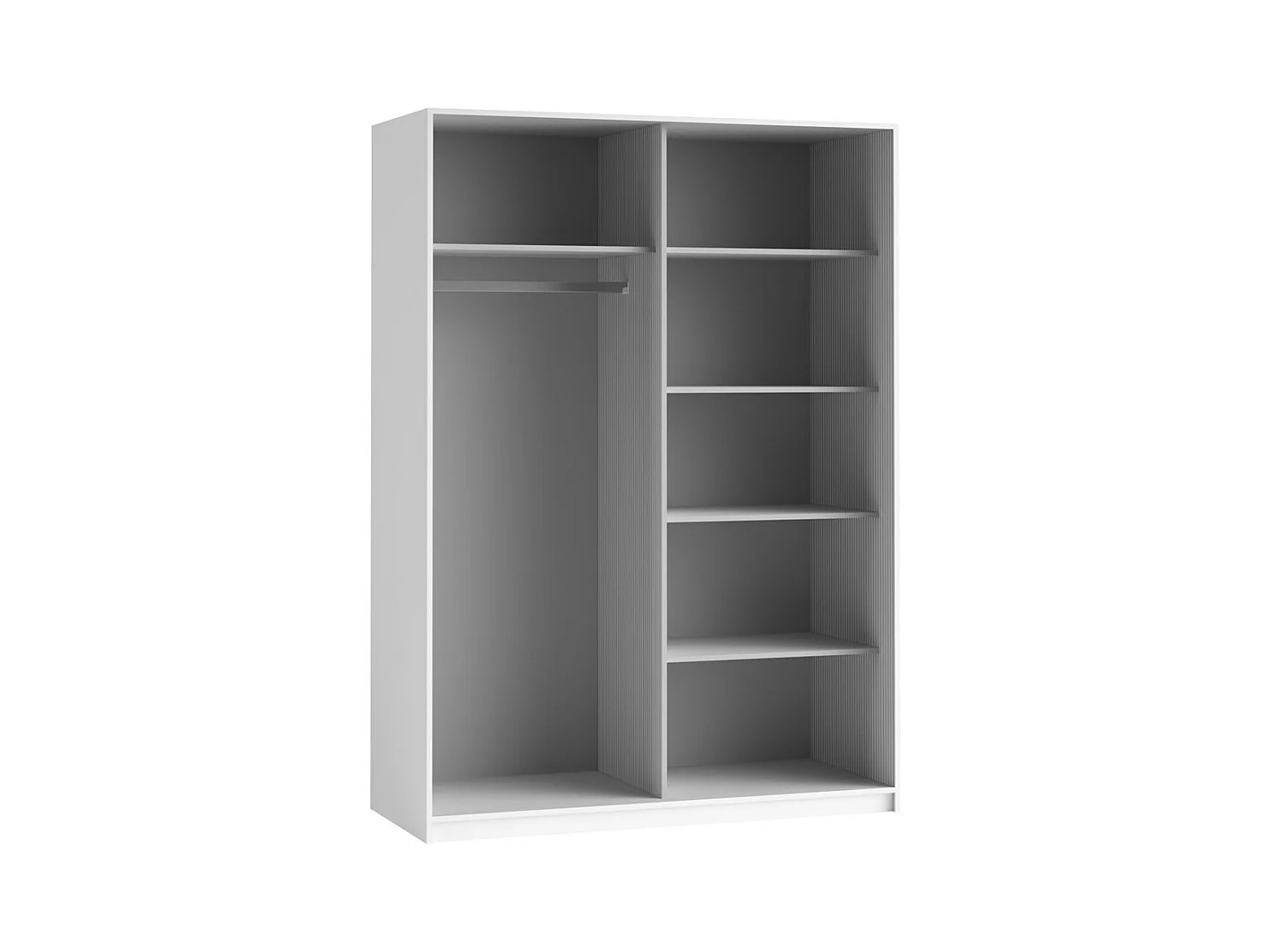 Armário, guarda-roupa GOZU 150 cm com duas portas de correr. Closet completo com espelho, cabideiro e prateleiras. Cor branca.