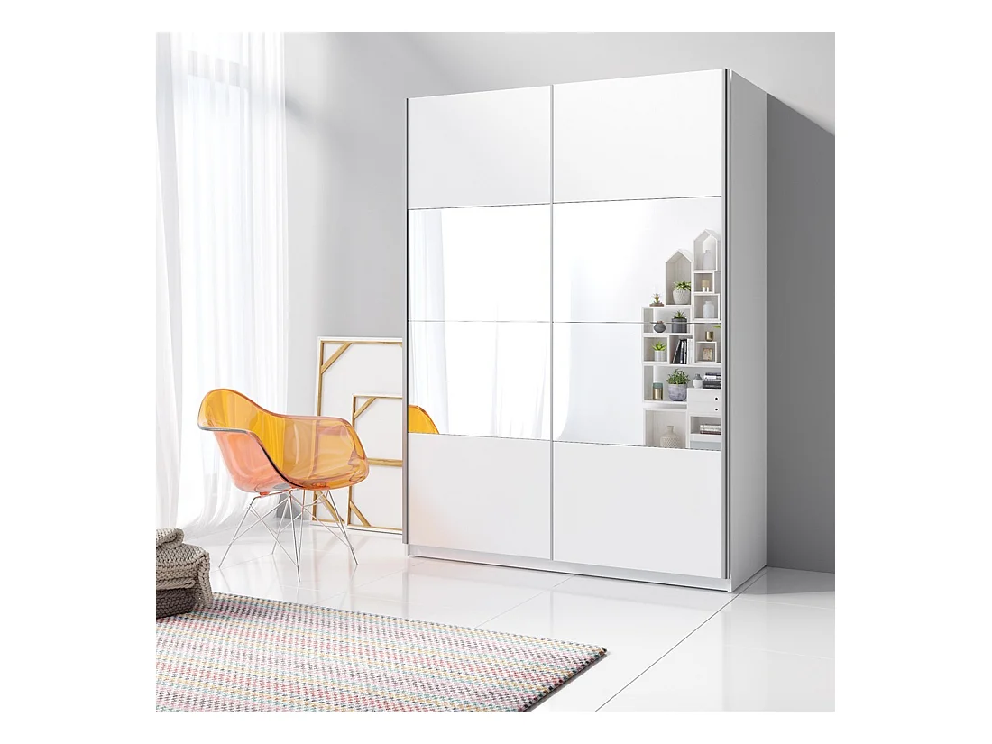 Armário com 2 portas de correr 220cm Cor branca com espelho. Coleção FLOYD