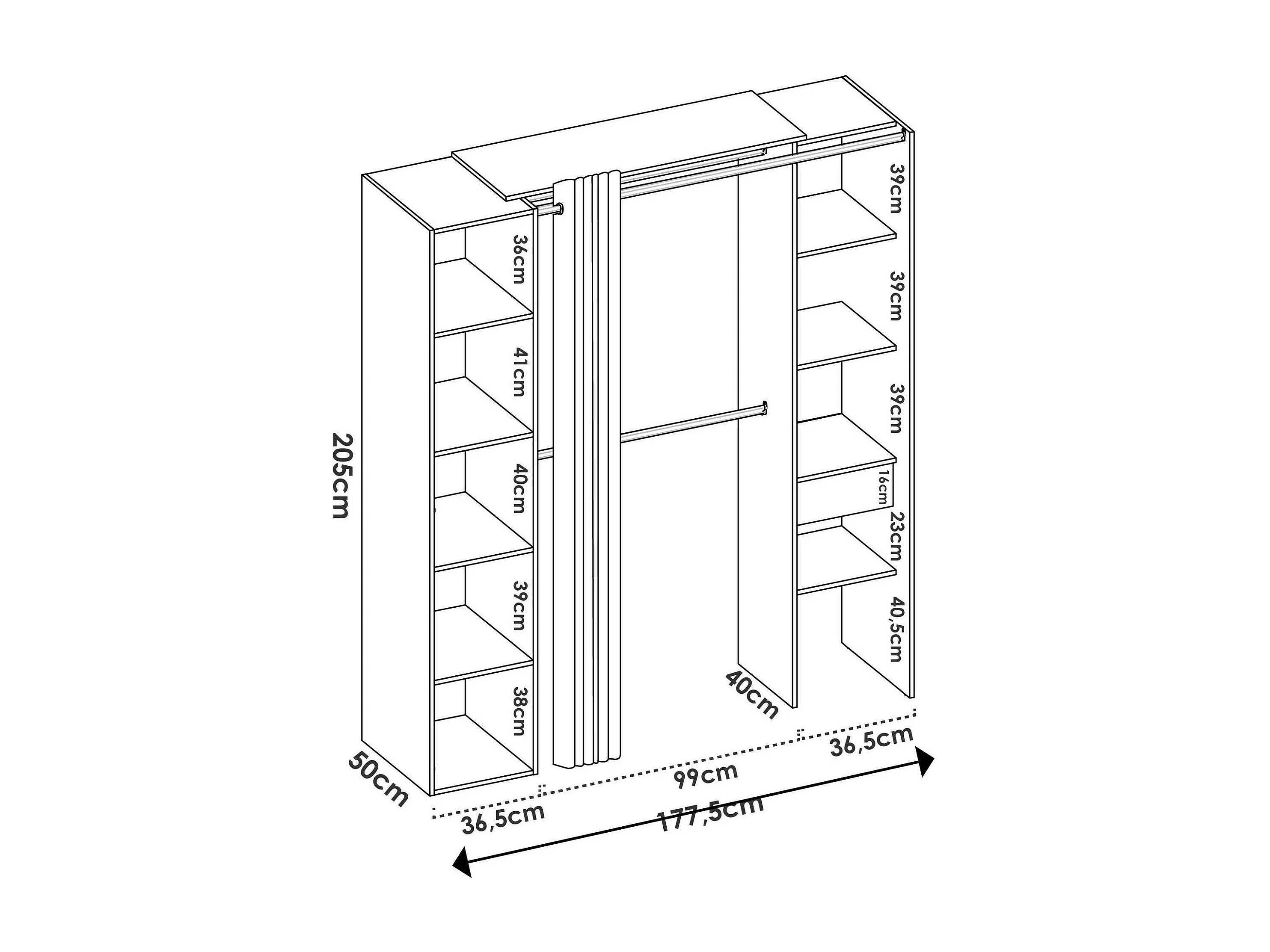 Armário Dmancin, Estrutura para guarda-roupa, Cabide aberto, 177x52h205 cm, Branco e Antracite