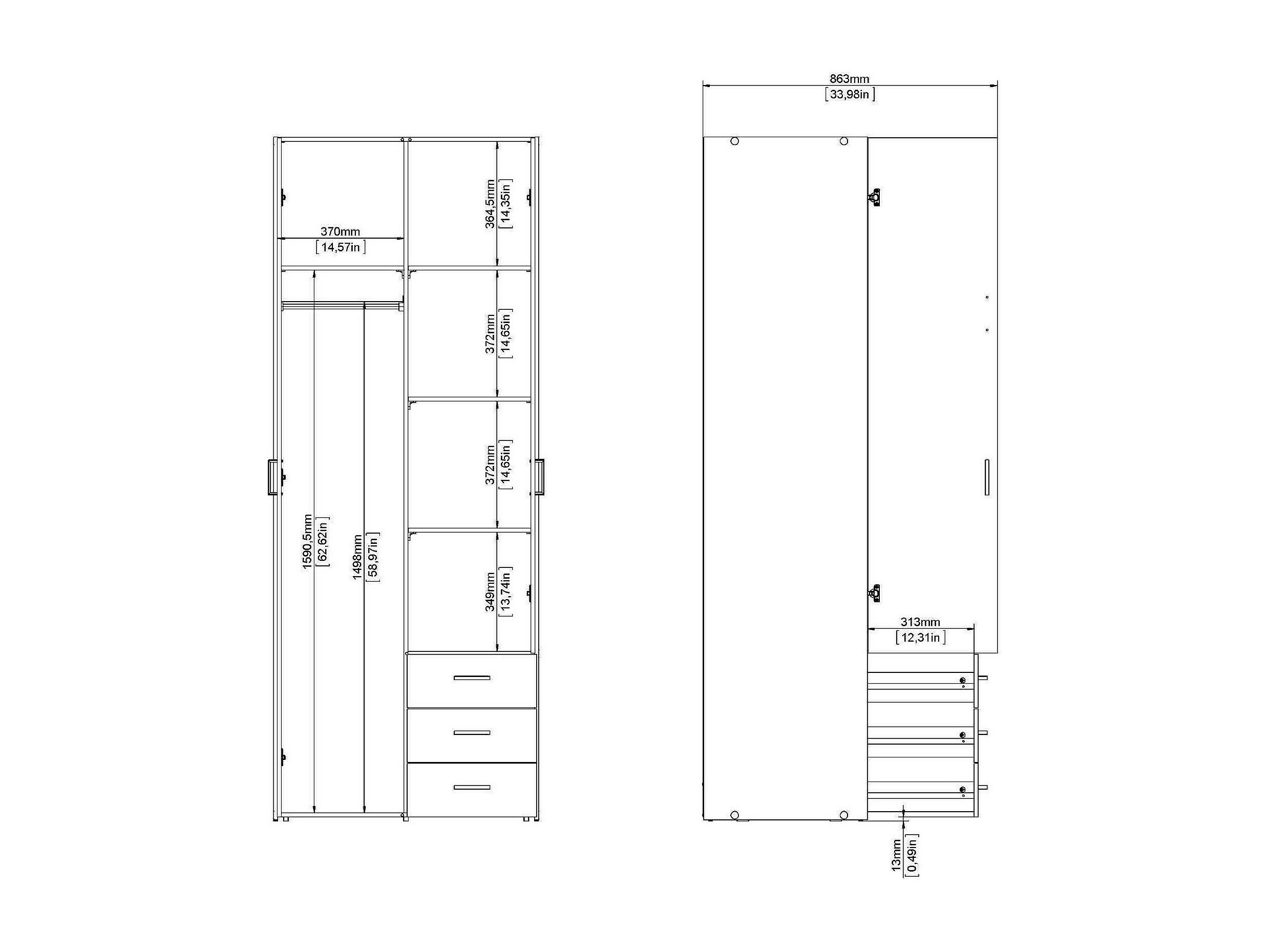 Armário Dscaratt 2 portas, Móveis de quarto, Armário, Armário, 78x50 h200 cm, Carvalho