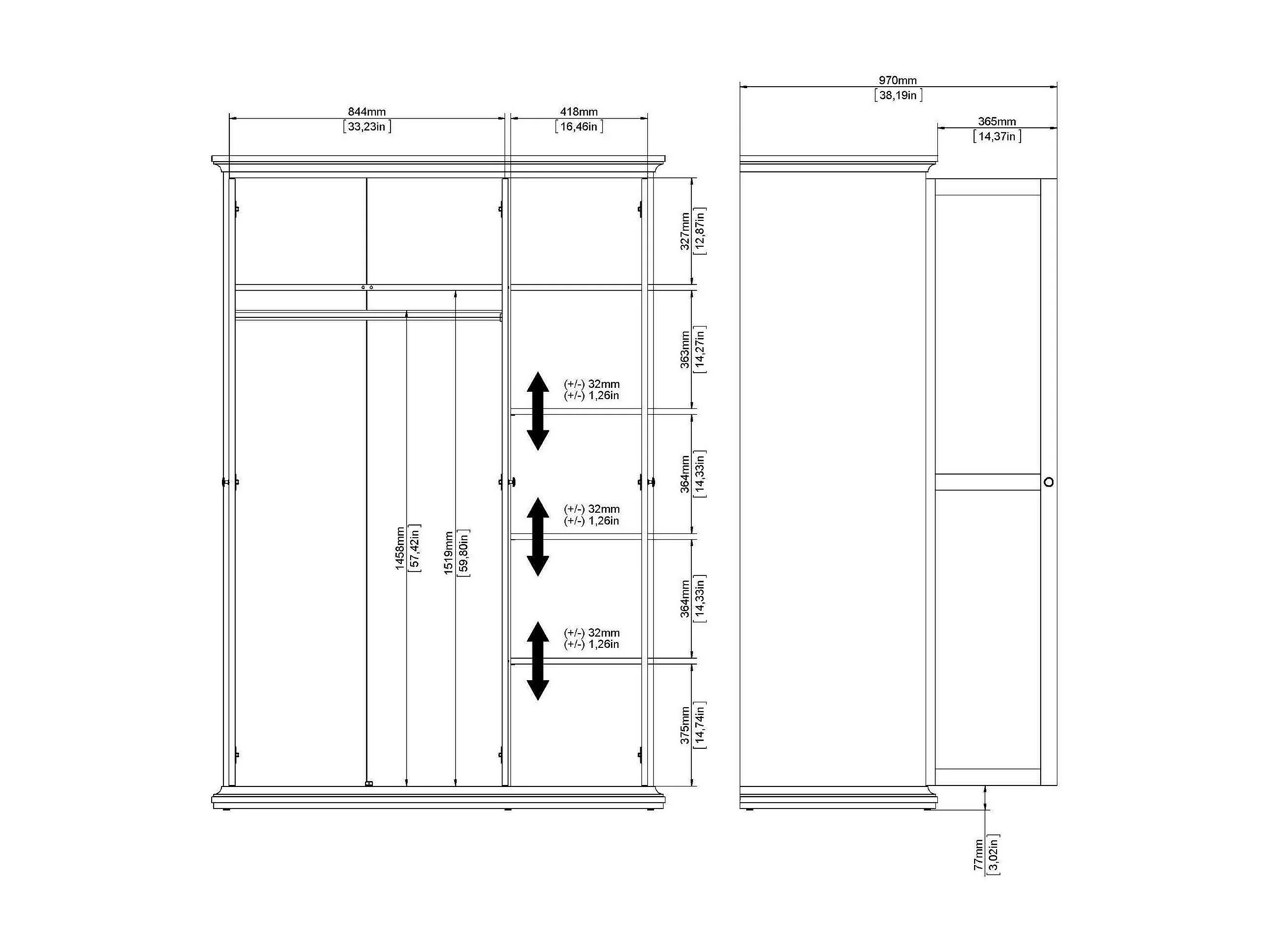 Armário Dsempe de 3 portas, Móveis de quarto, Armário, Armário, 139x61 h201 cm, Branco
